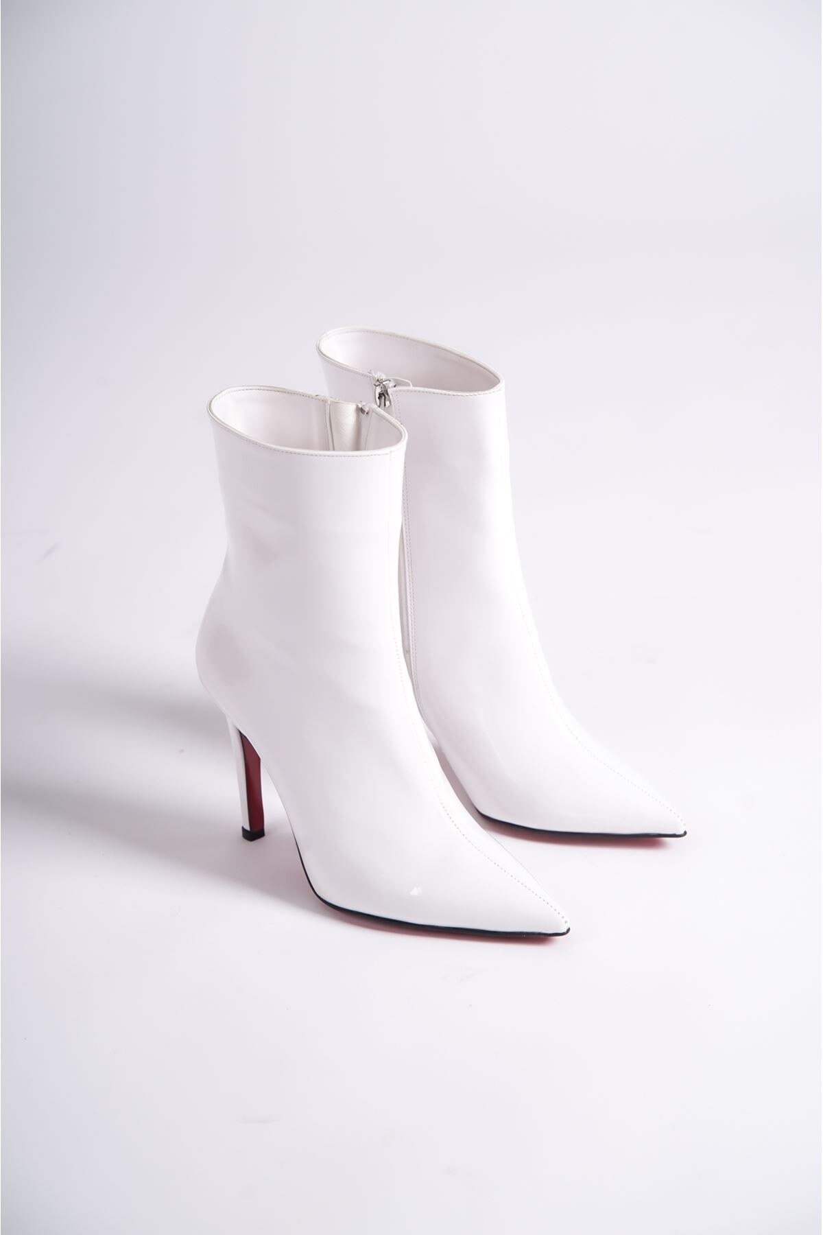 Kadın Sivri Burun Topuklu Bot Togi Beyaz Rugan