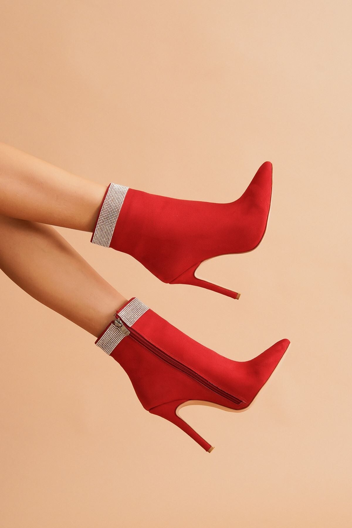 Kadın Bilektaşlı Sivri Burun Bot Diya Kırmızı Süet