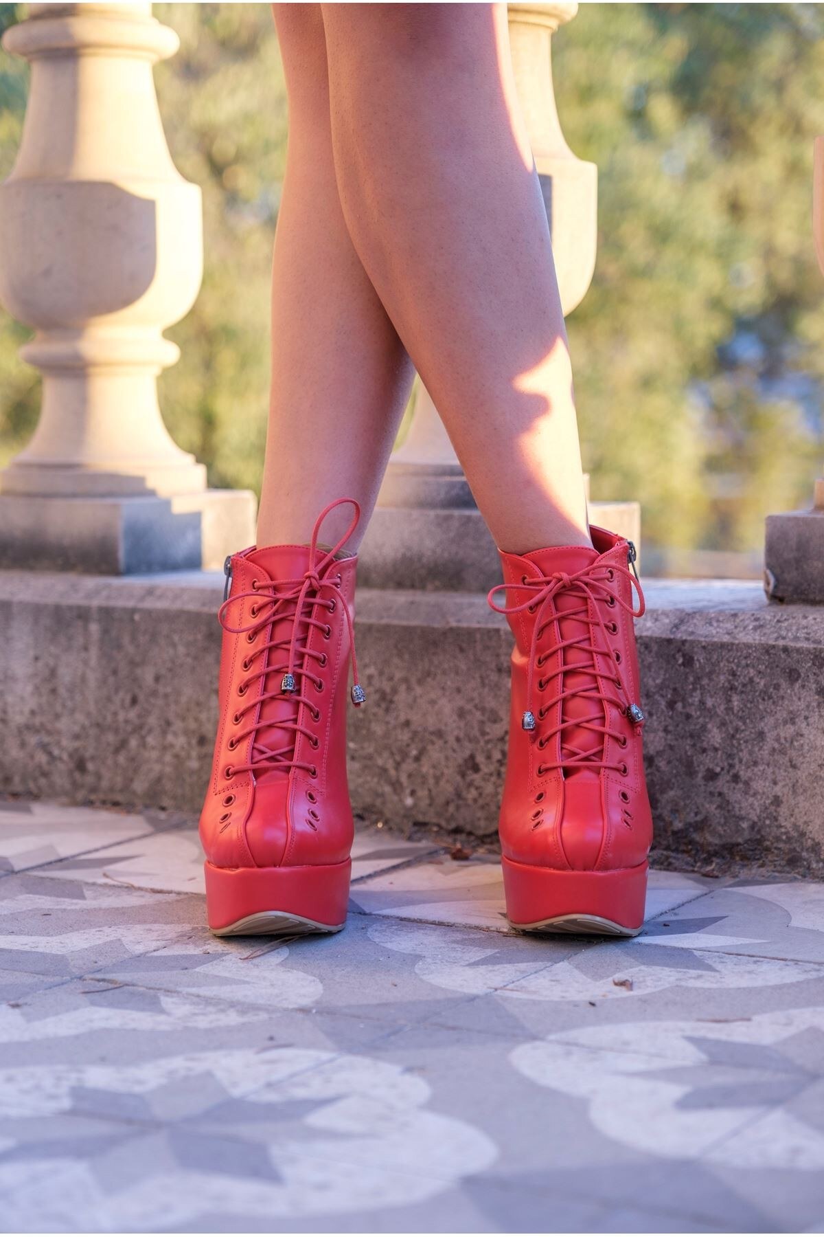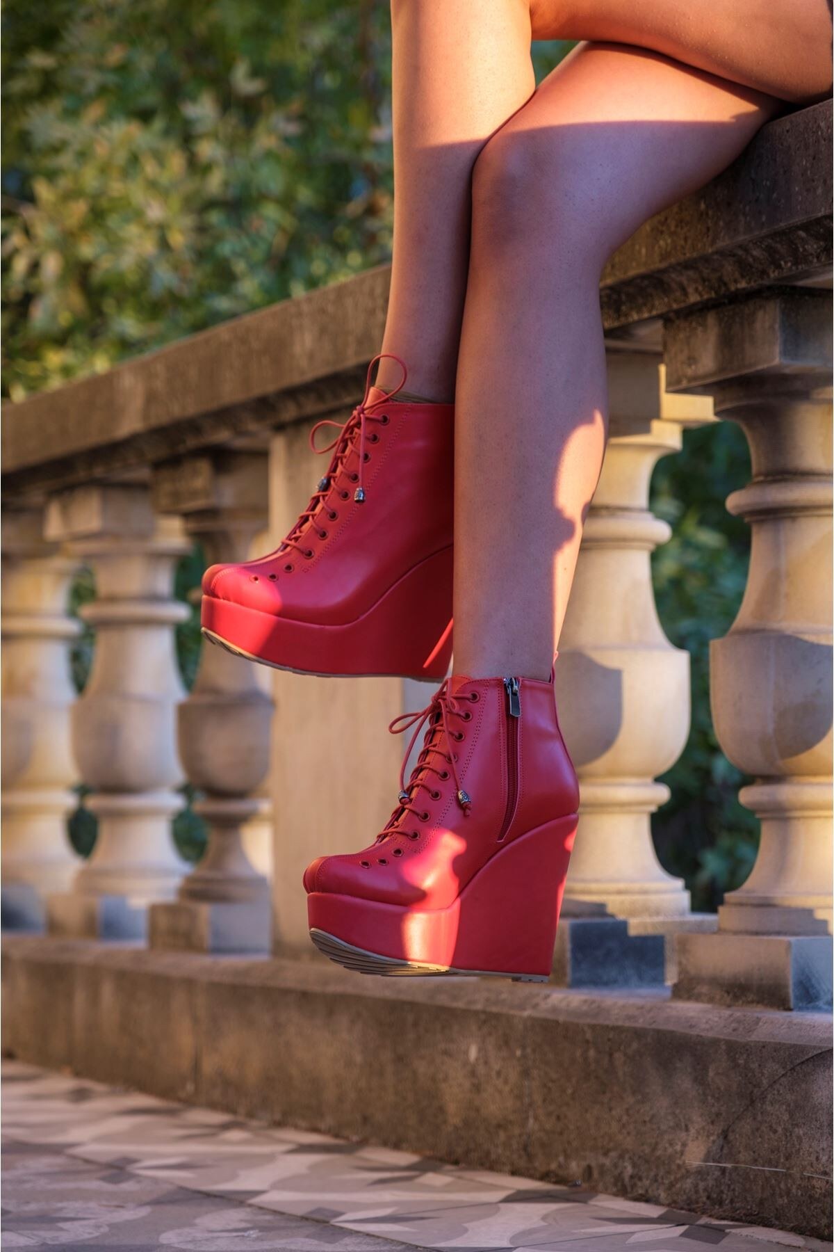 Kadın Dolgu Topuk Bağcıklı Bot Lindy Kırmızı Cilt