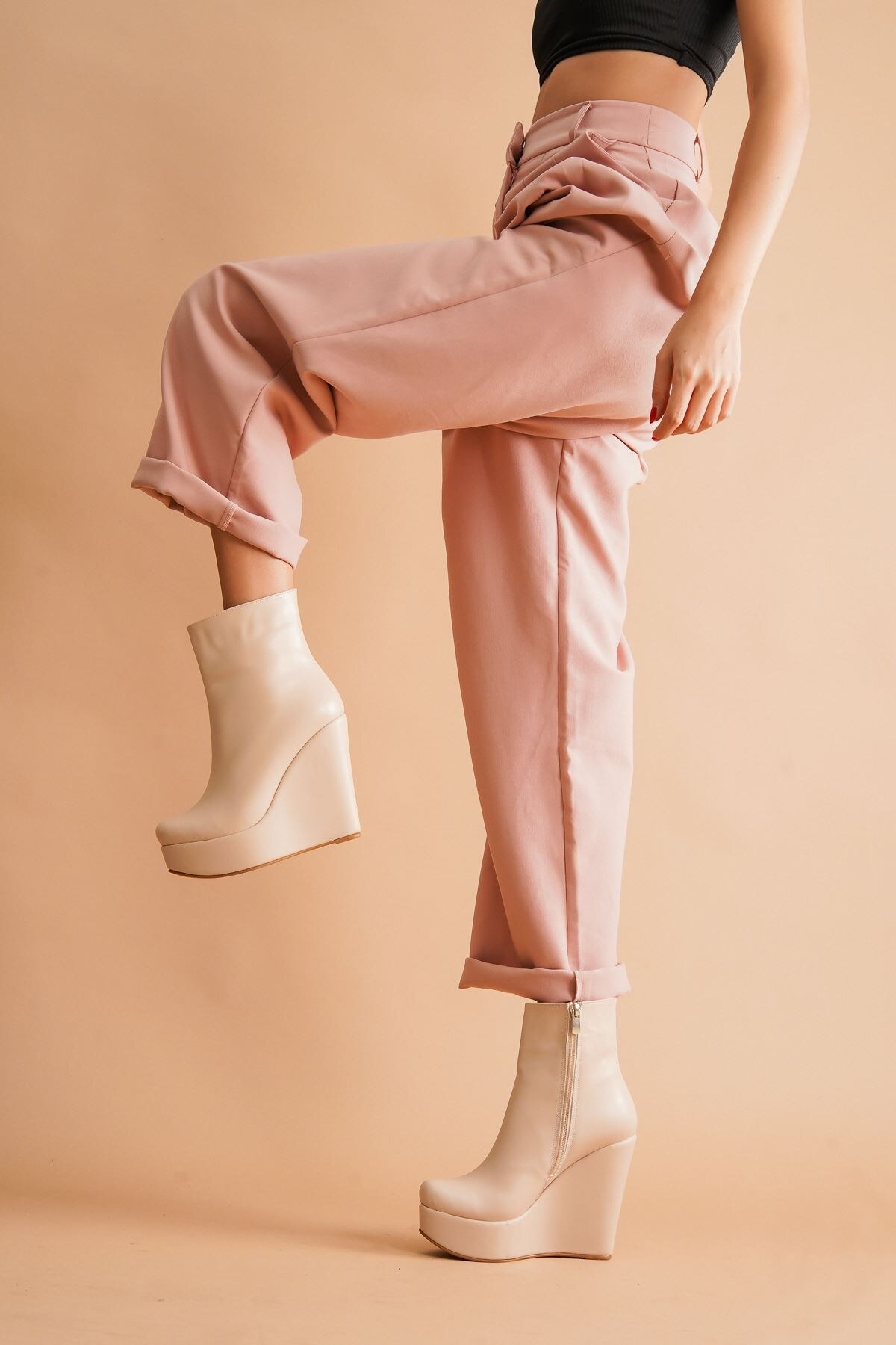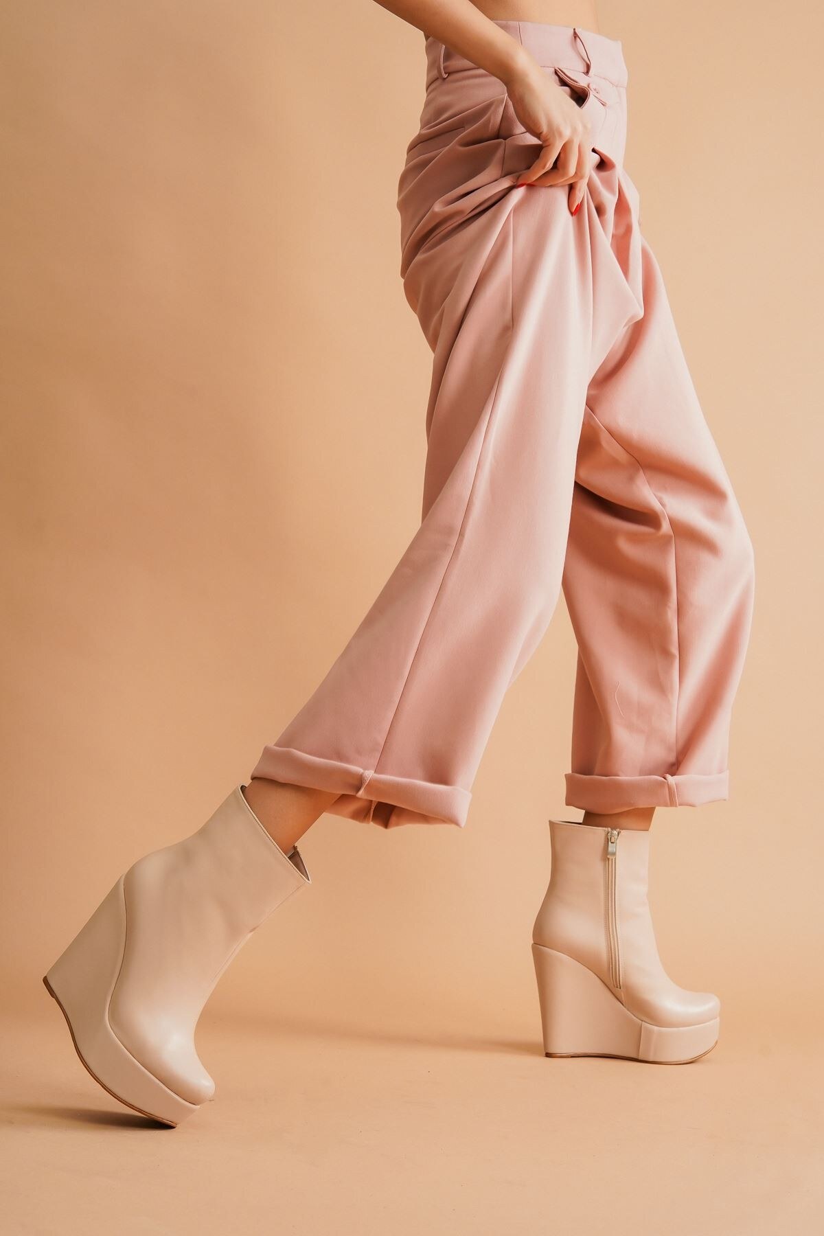 Kadın Dolgu Topuk Fermuarlı Bot Daina Nude Cilt