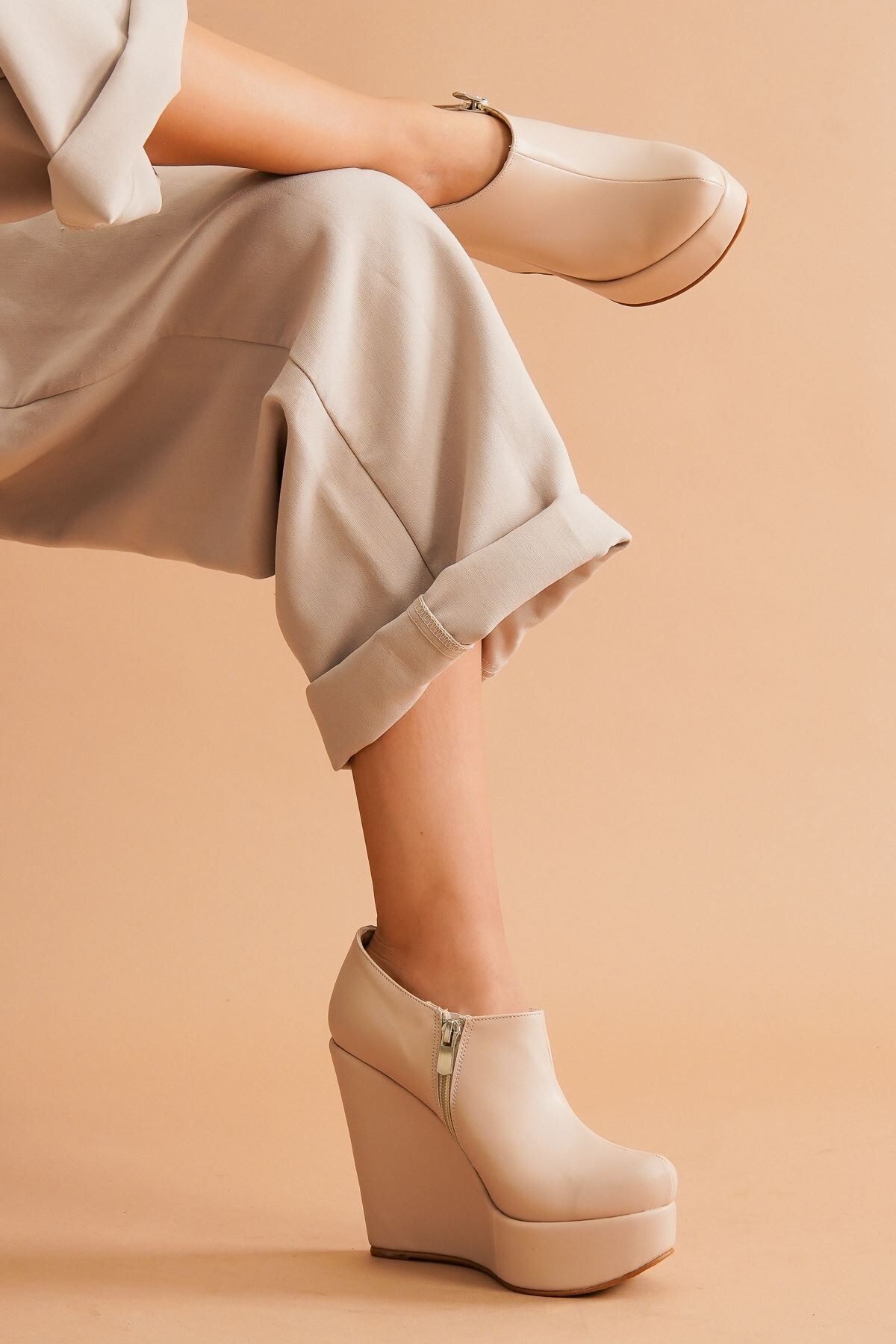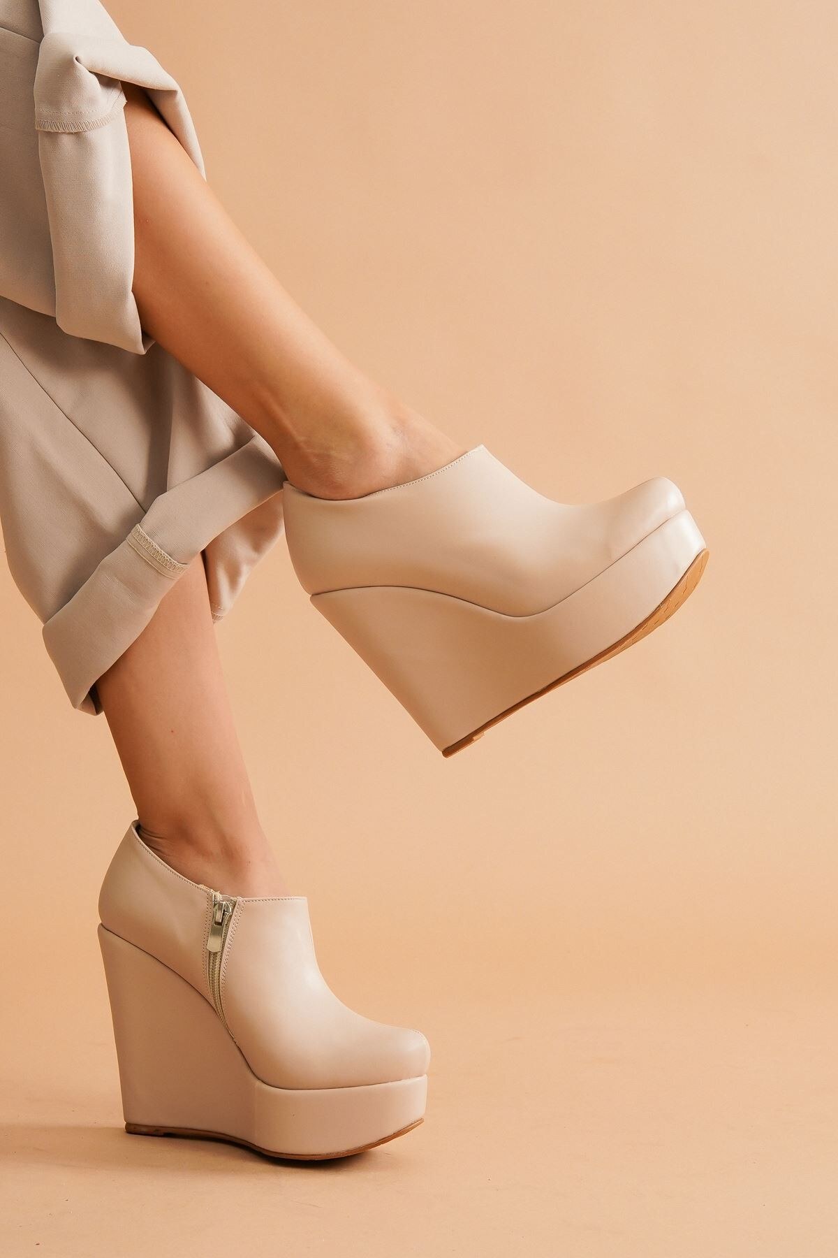 Kadın Dolgu Topuk Kısa Bot Abaco Nude Cilt