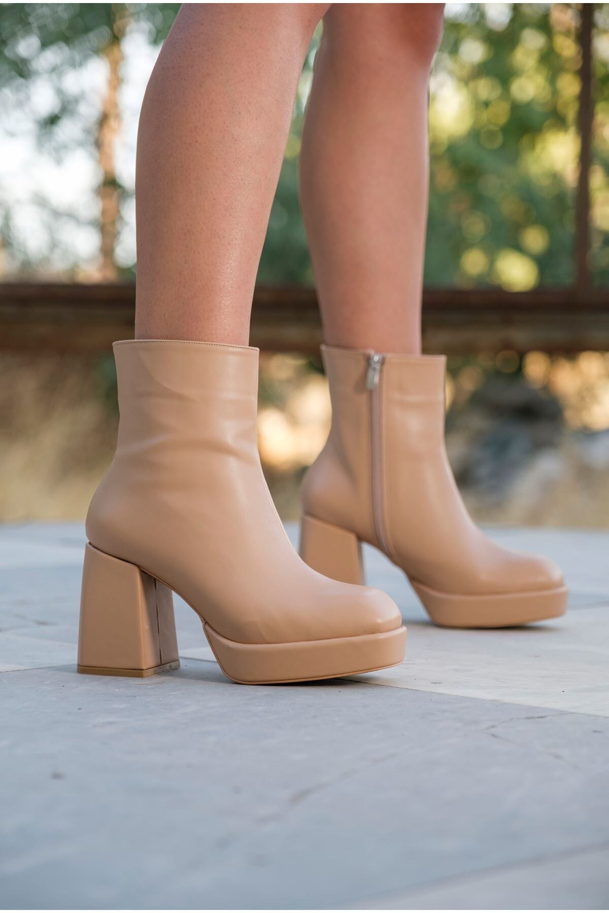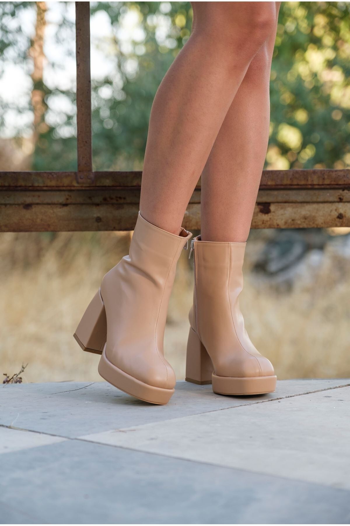Kadın Kalın Topuk Platformlu Bot Layana Nude Cilt