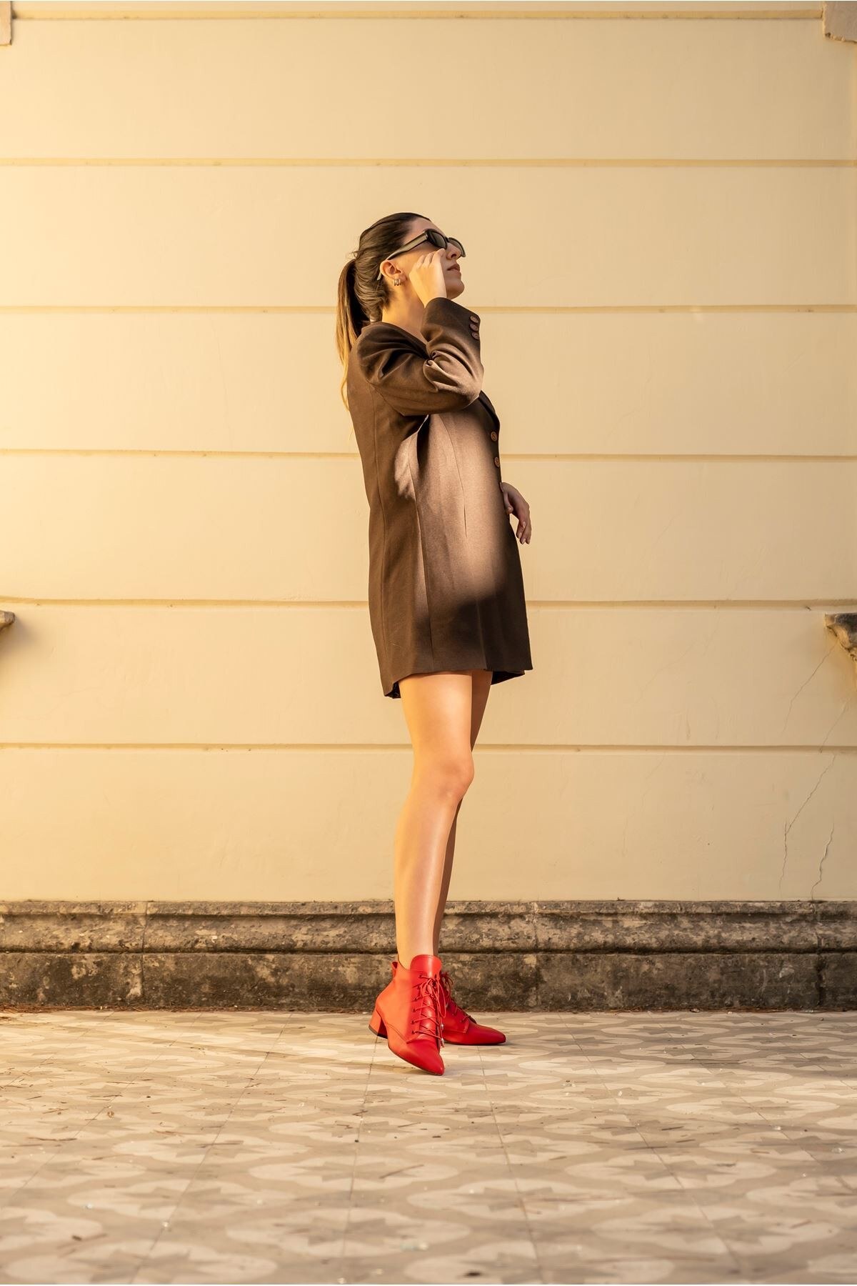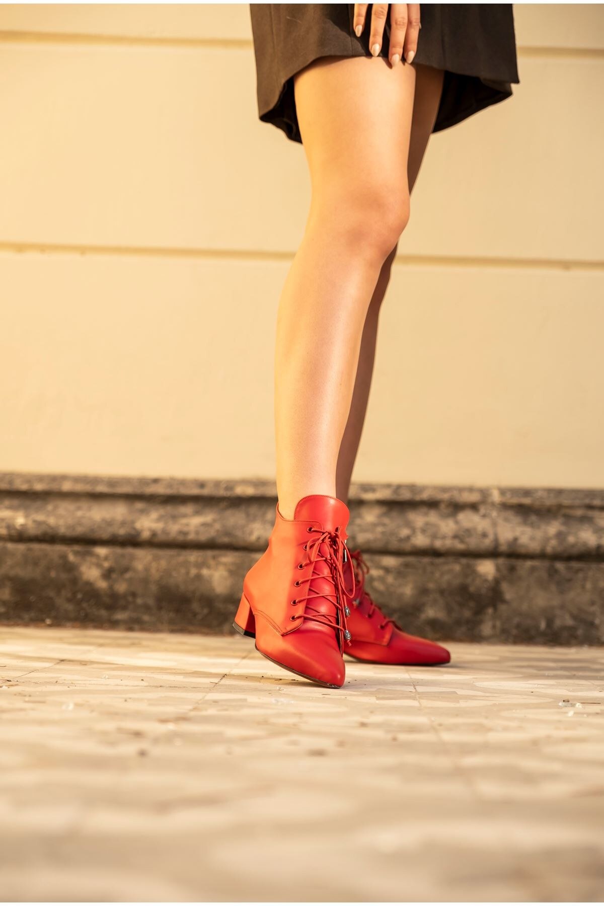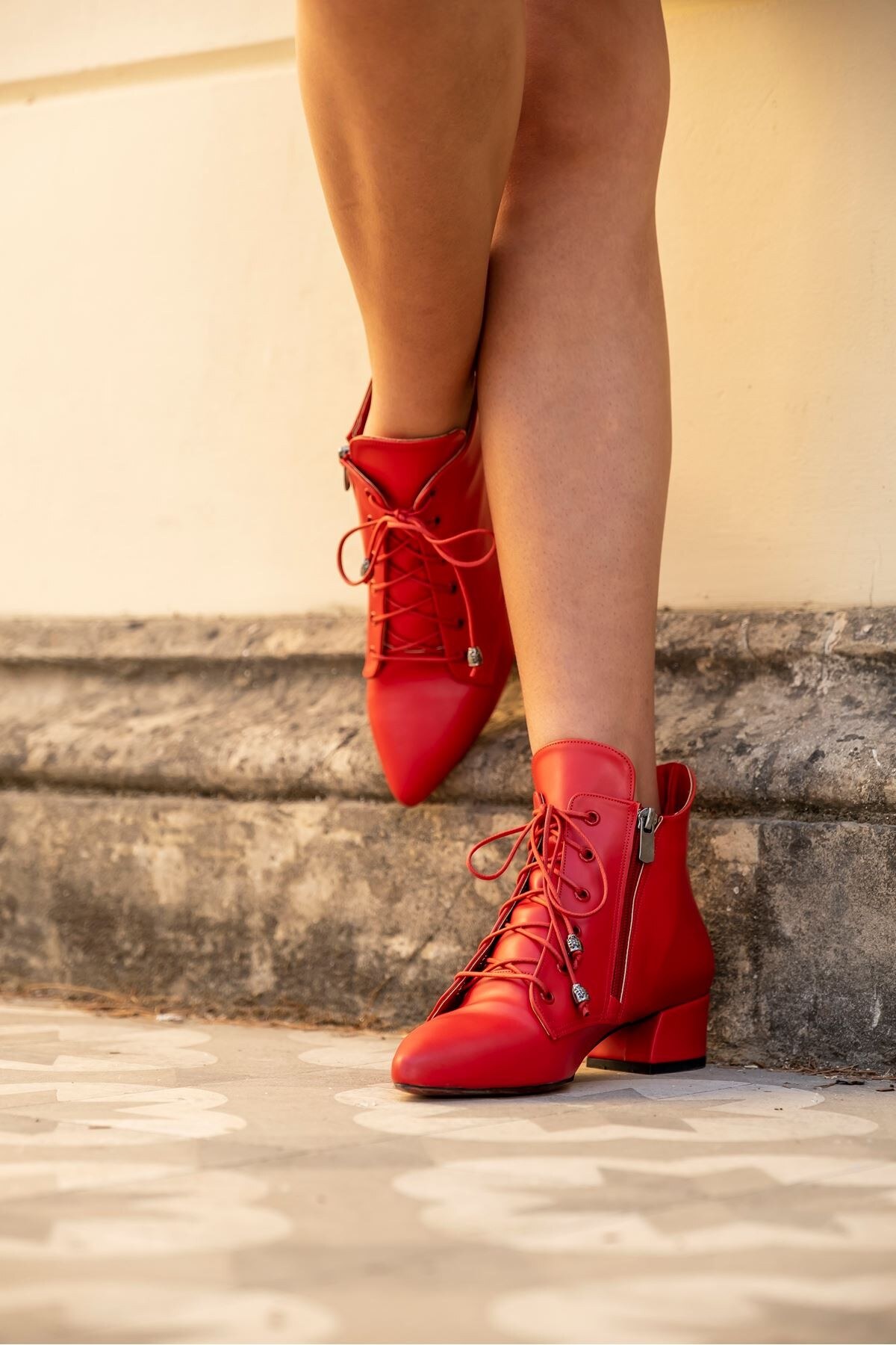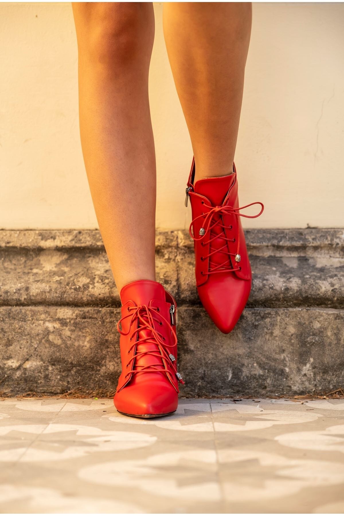 Kadın Kısa Topuklu Bağcıklı Bot Marea Kırmızı Cilt
