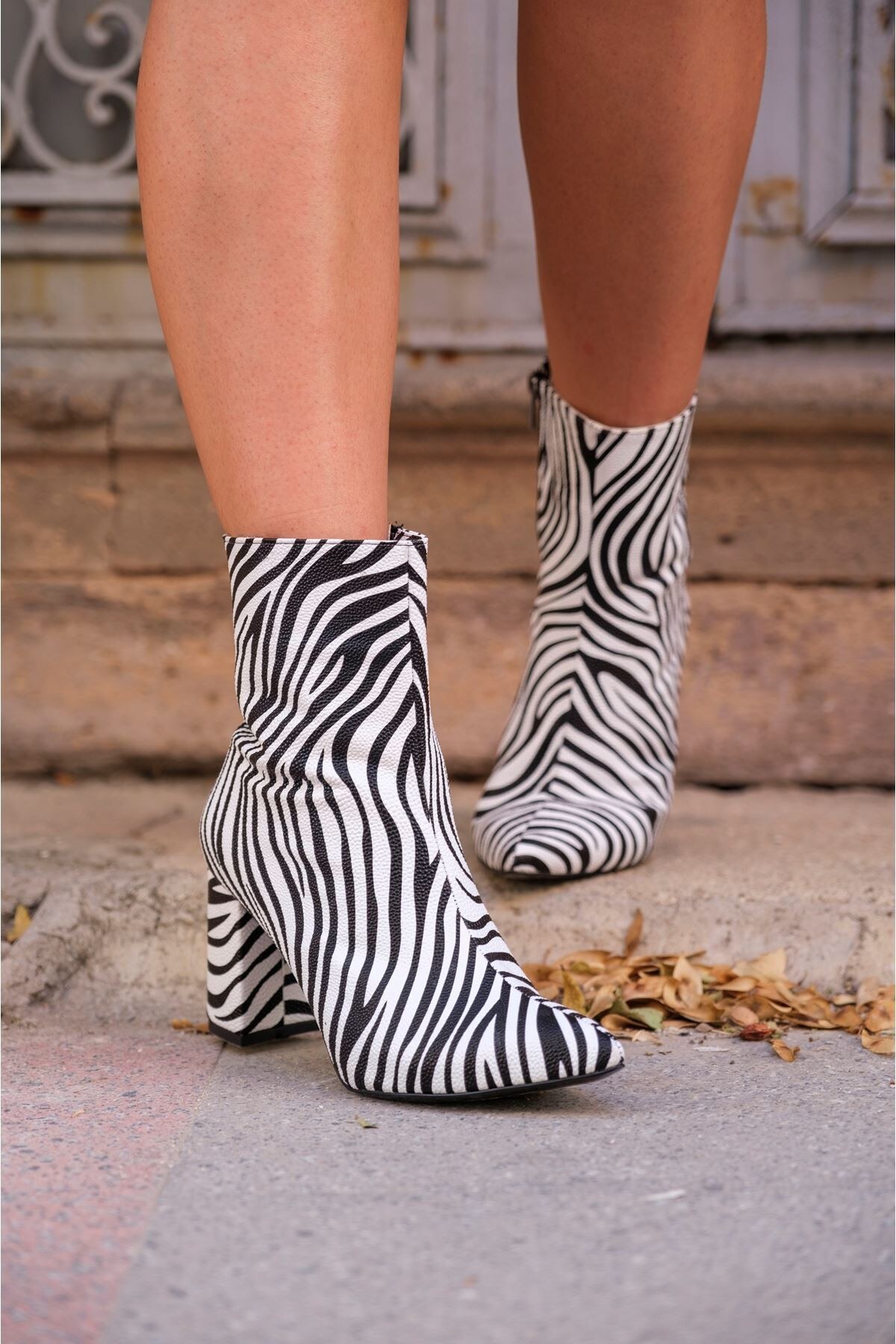 Kadın Kısa Topuklu Sivri Bot Kona Zebra