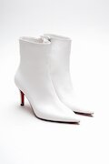 Kadın Kısa Topuklu Sivri Burun Bot Deco Beyaz Cilt