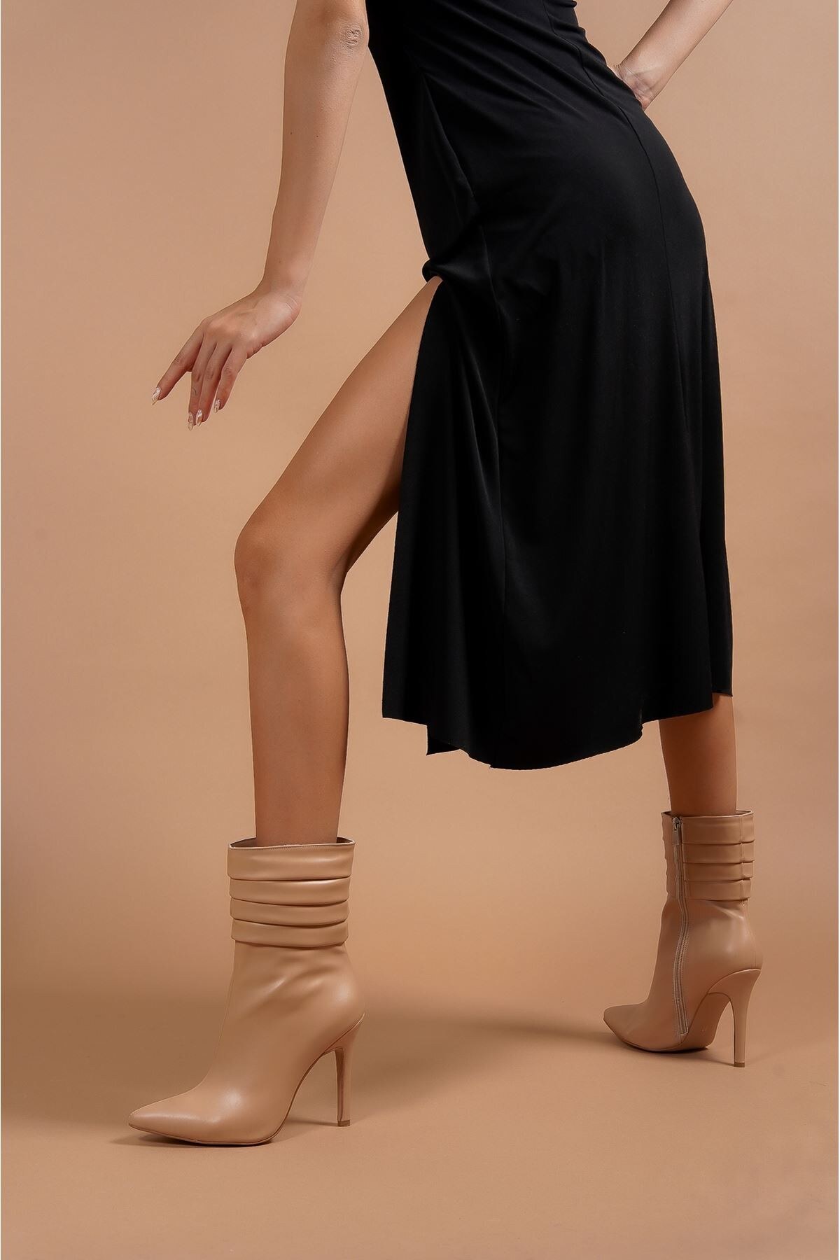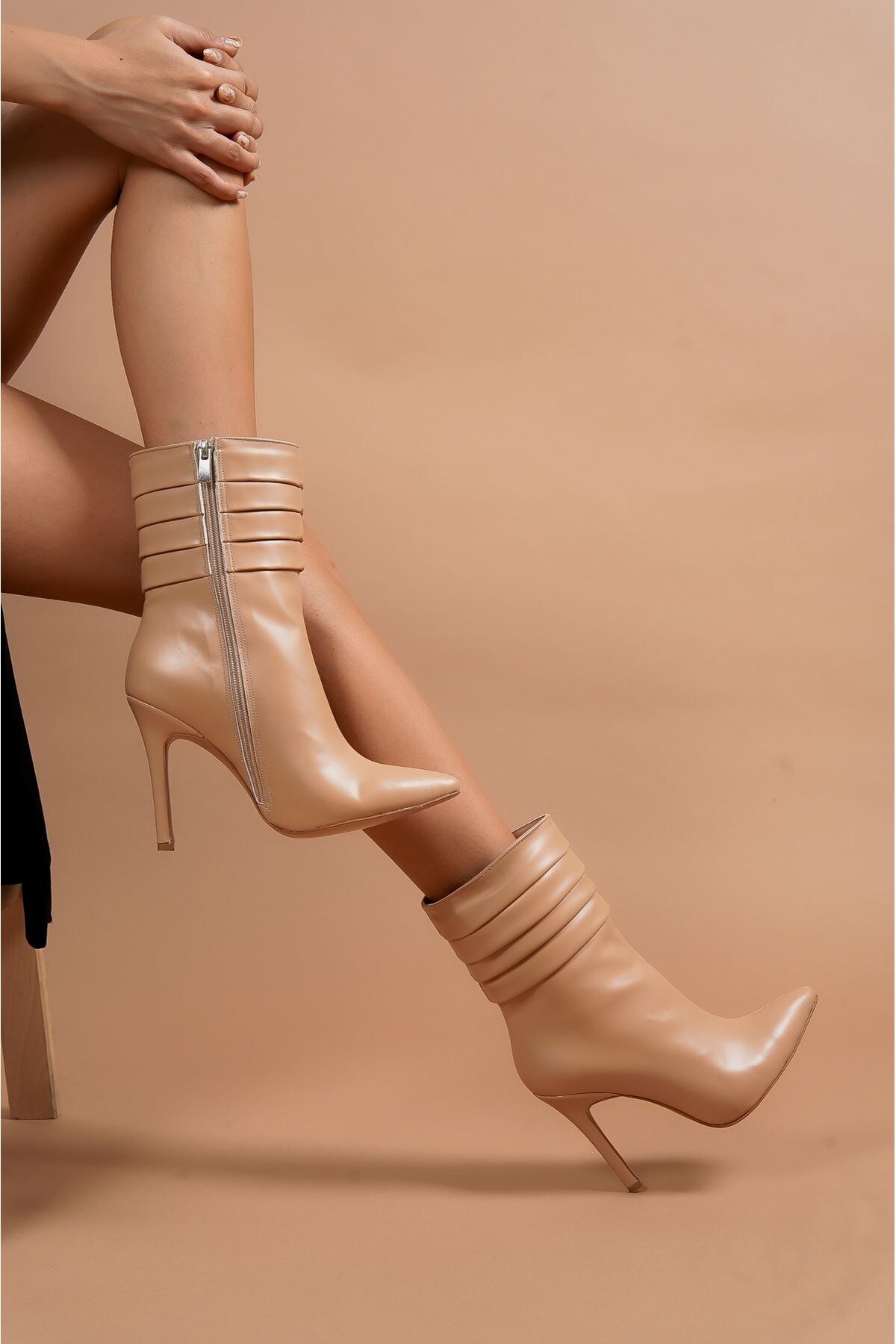 Kadın Pileli İnce Topuk Bot Diamond Nude Cilt