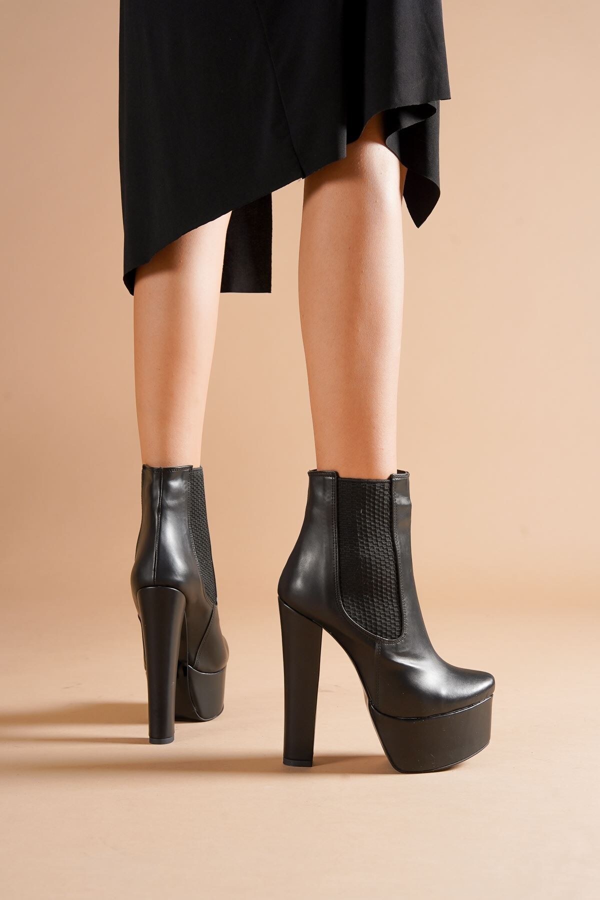 Kadın Platform Topuk Lastikli Bot Pari Siyah