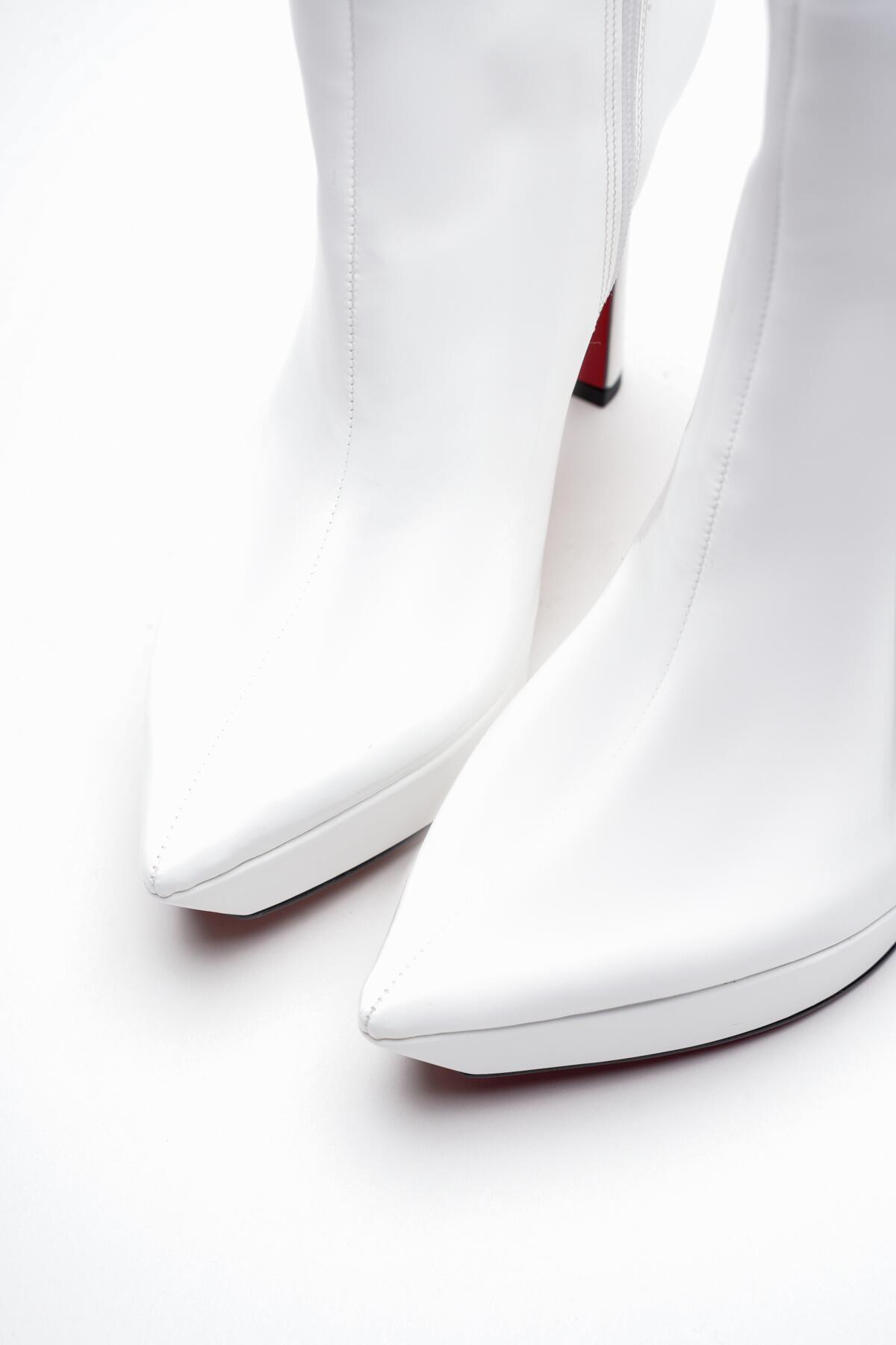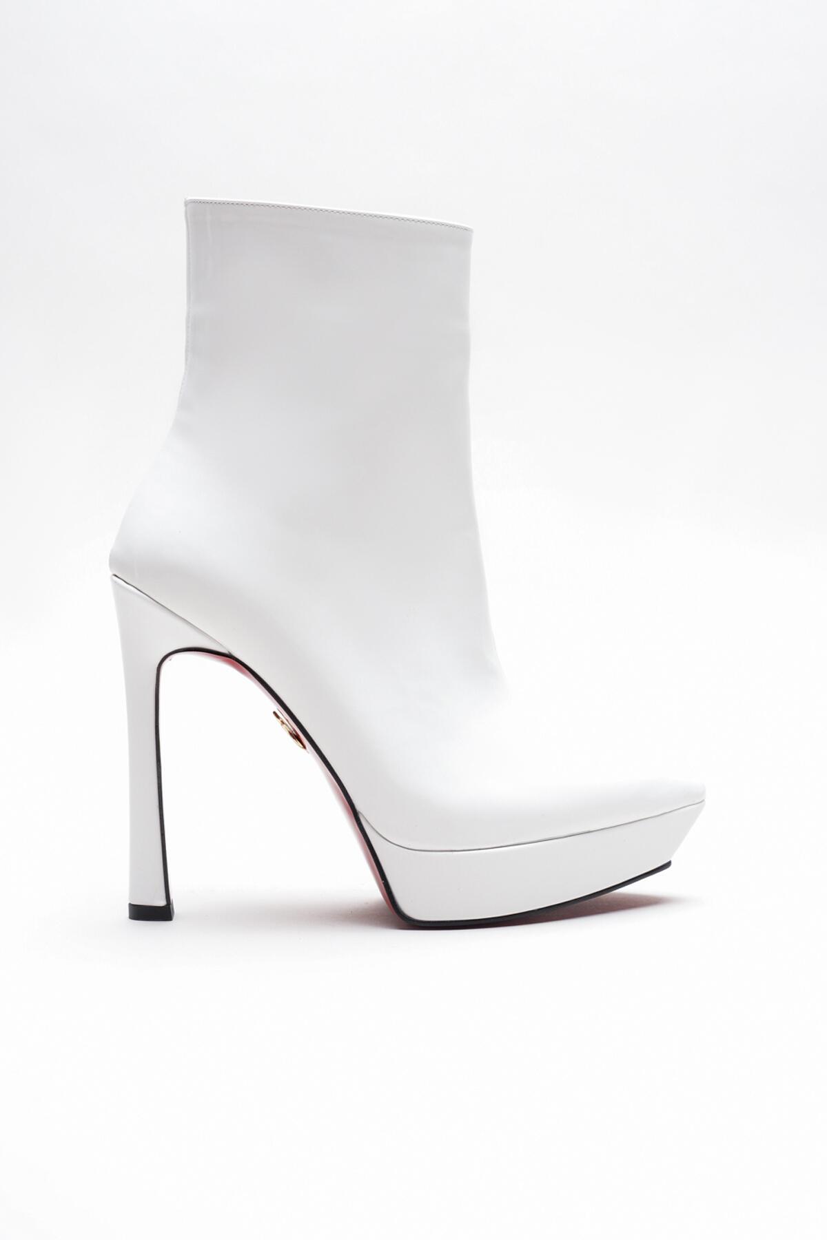 Kadın Platform Topuklu Bot Pilera Beyaz Rugan