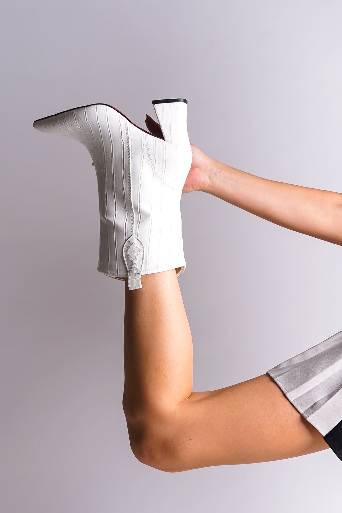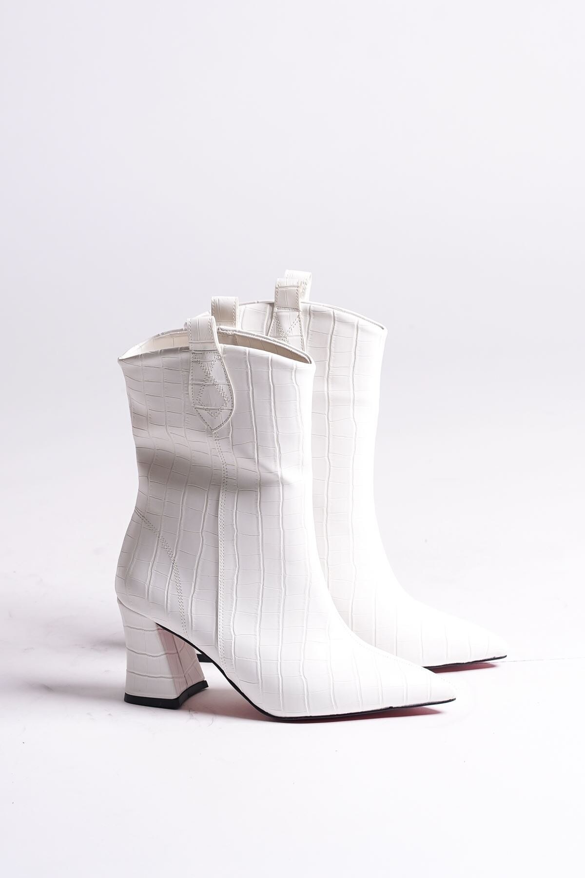 Kadın Sivri Burun Kovbot Bot Berry Beyaz Kroko
