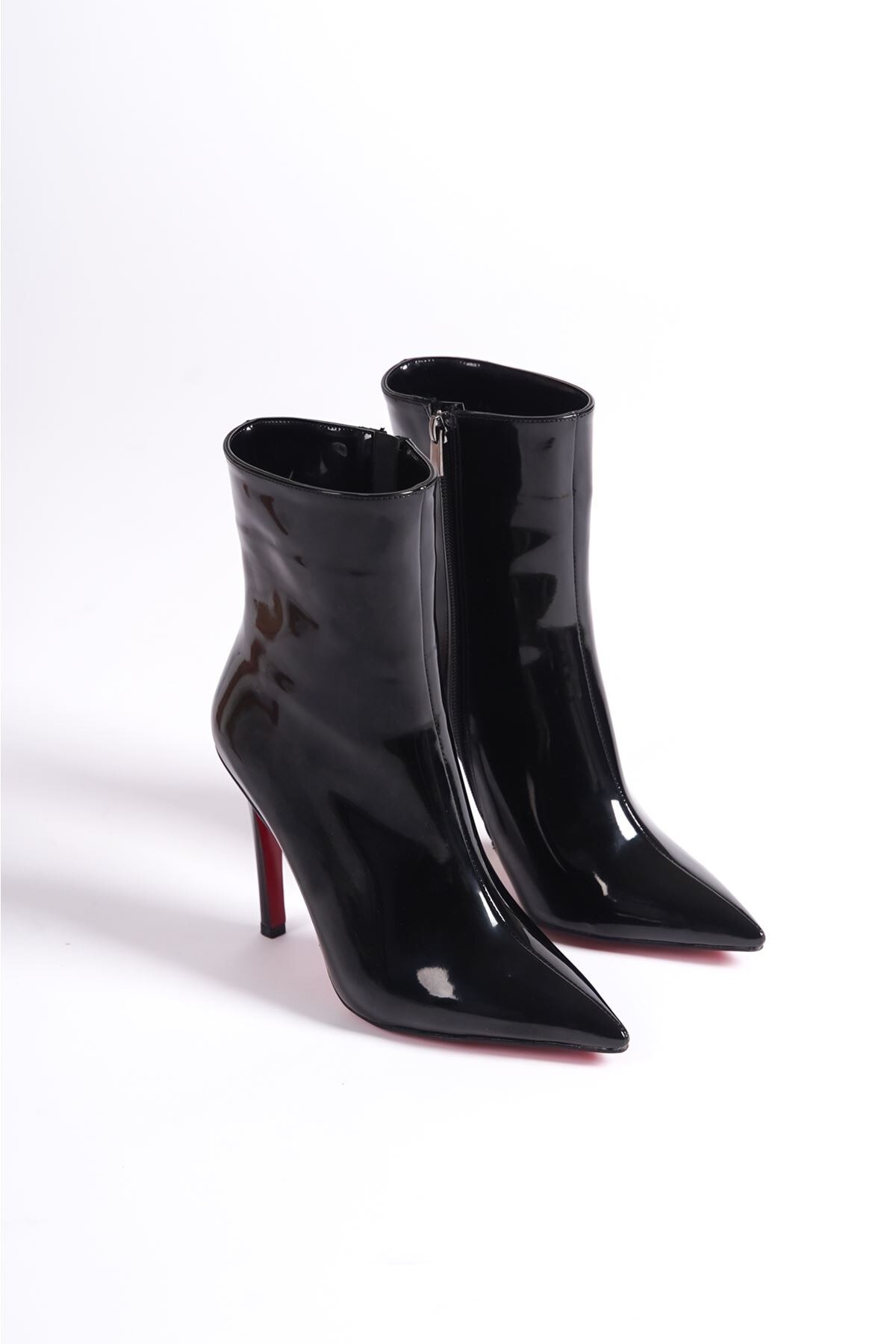 Kadın Sivri Burun Topuklu Bot Togi Siyah Rugan