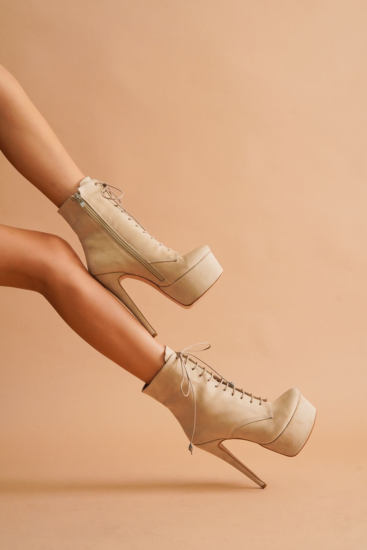 Kadın Yüksek Topuk Bağcıklı Bot Gray Ten