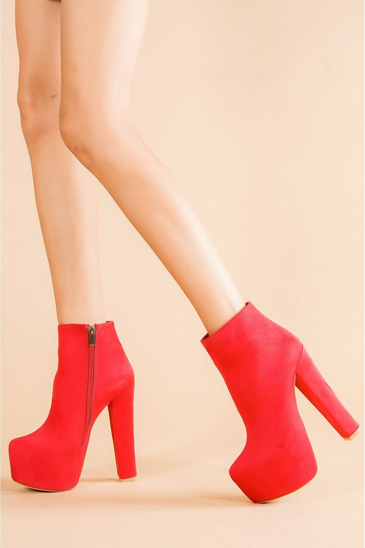 Kadın Yüksek Topuk Platform Bot Punta Kırmızı Süet