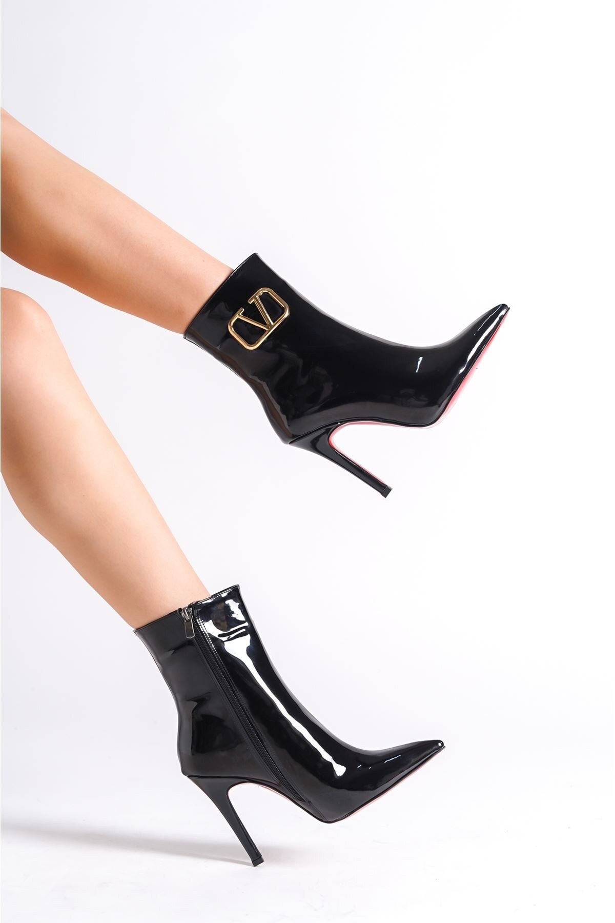 Kadın V Toka Sivri Burun Bot Marta Siyah Rugan