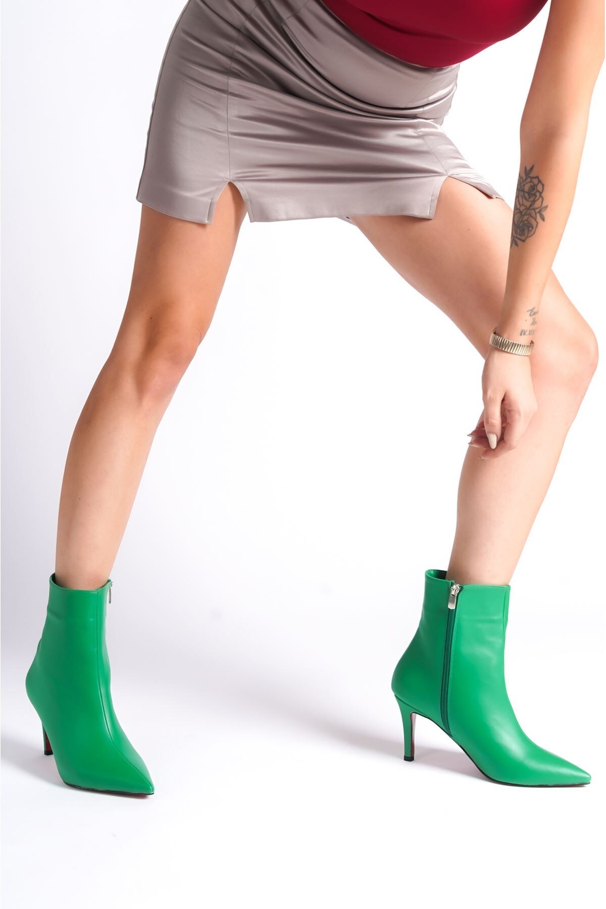 Kadın Kısa Topuklu Sivri Burun Bot Deco Yeşil