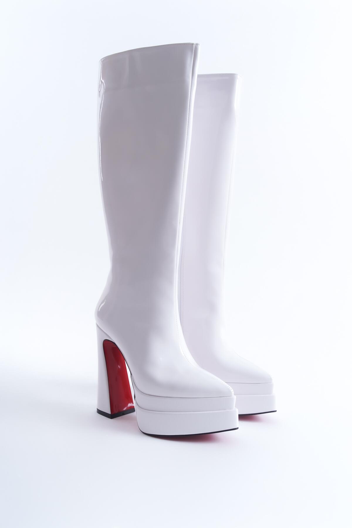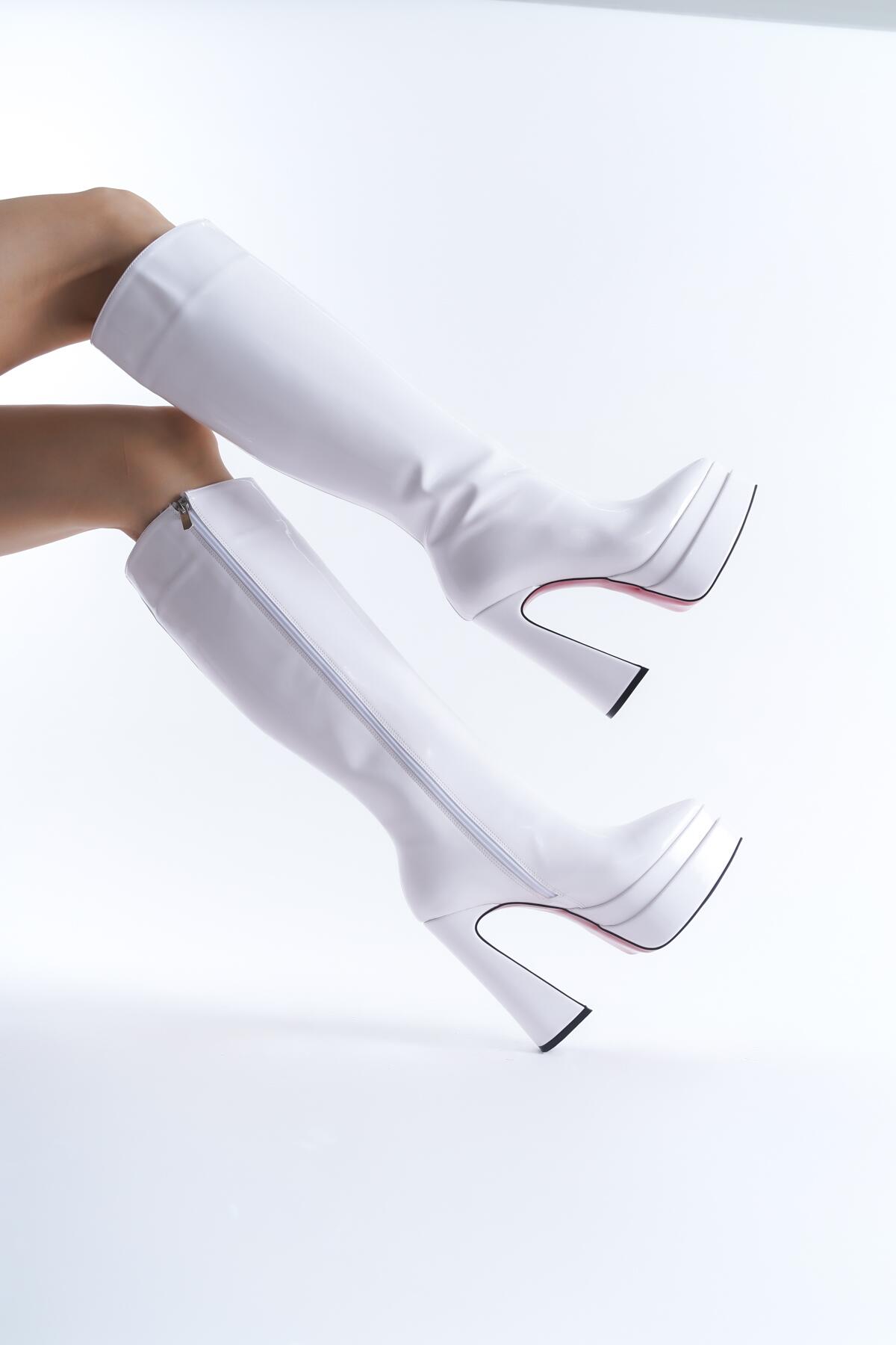 Kadın Çift Platform Yüksek Topuklu Çizme Jolly Beyaz Rugan