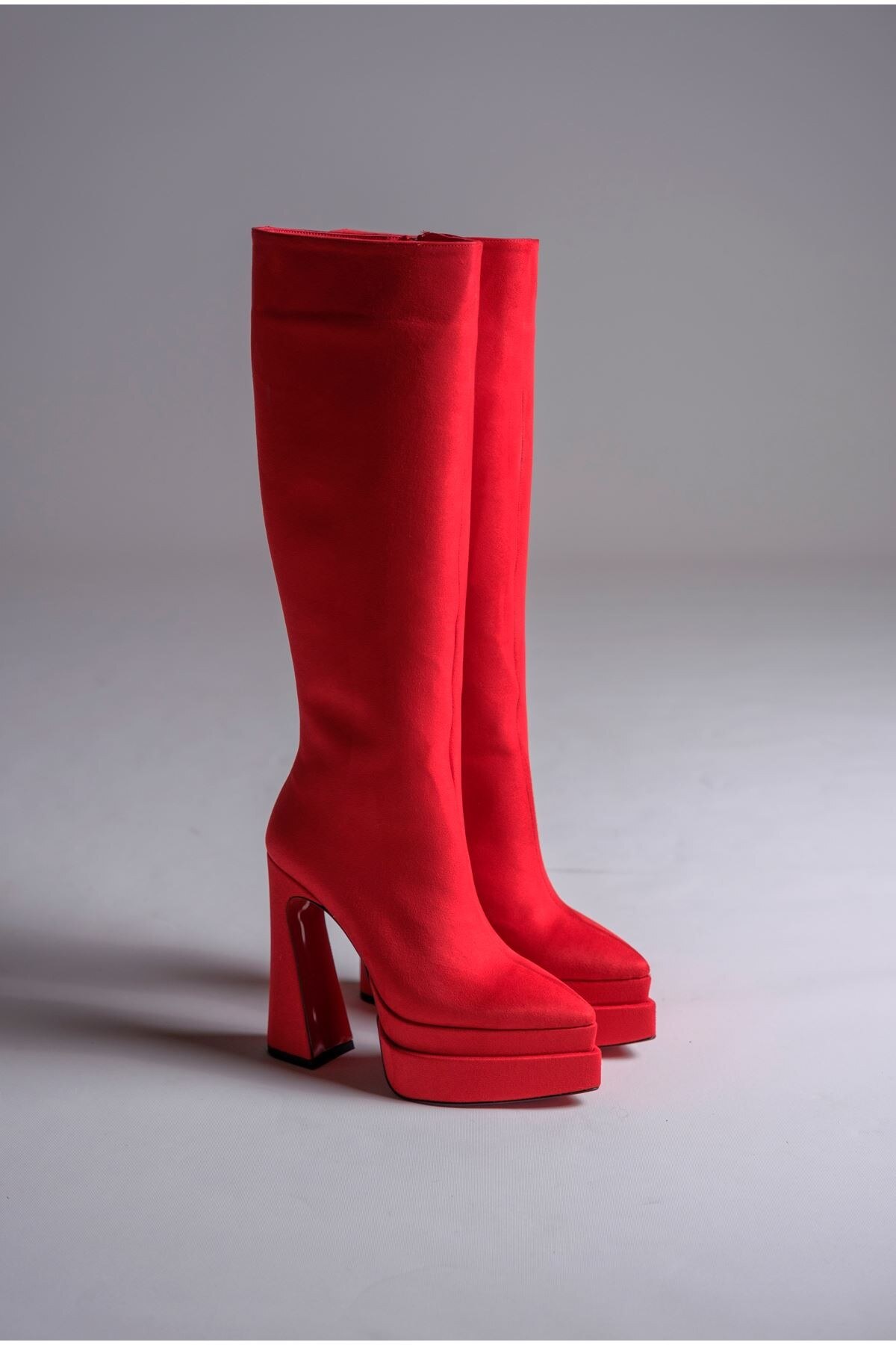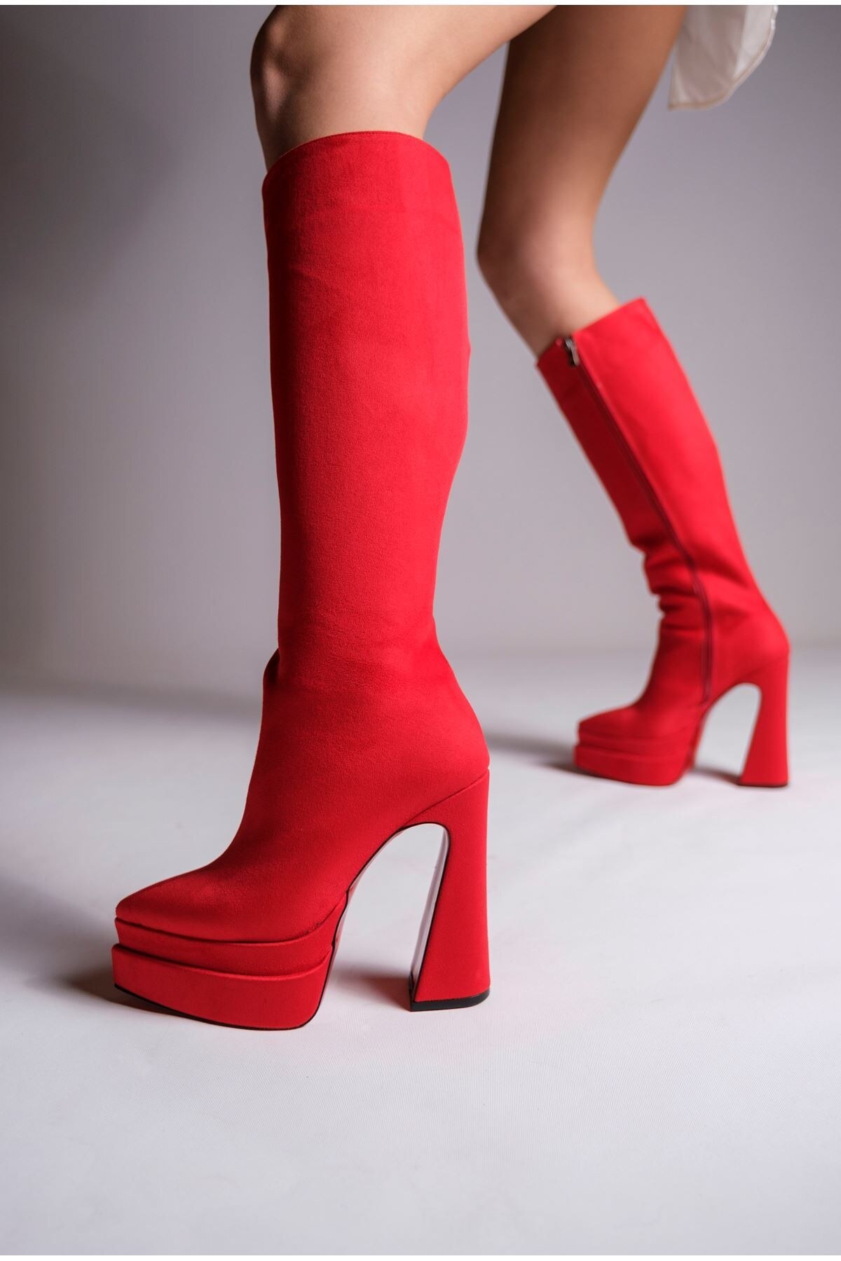 Kadın Çift Platform Yüksek Topuklu Çizme Jolly Kırmızı Süet