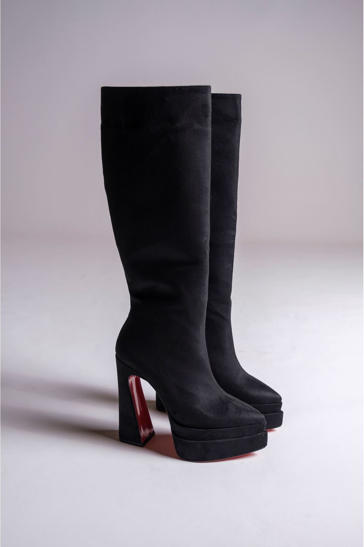 Kadın Çift Platform Yüksek Topuklu Çizme Jolly Siyah Süet