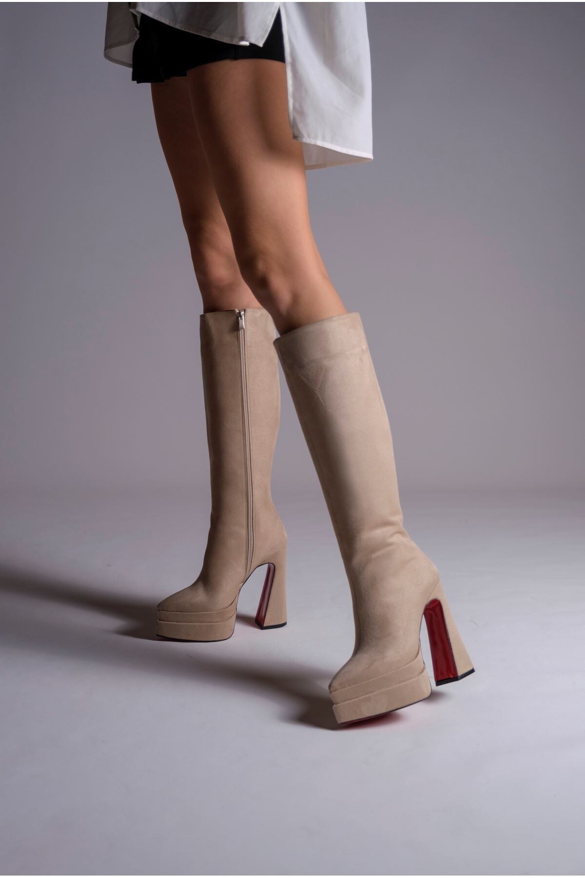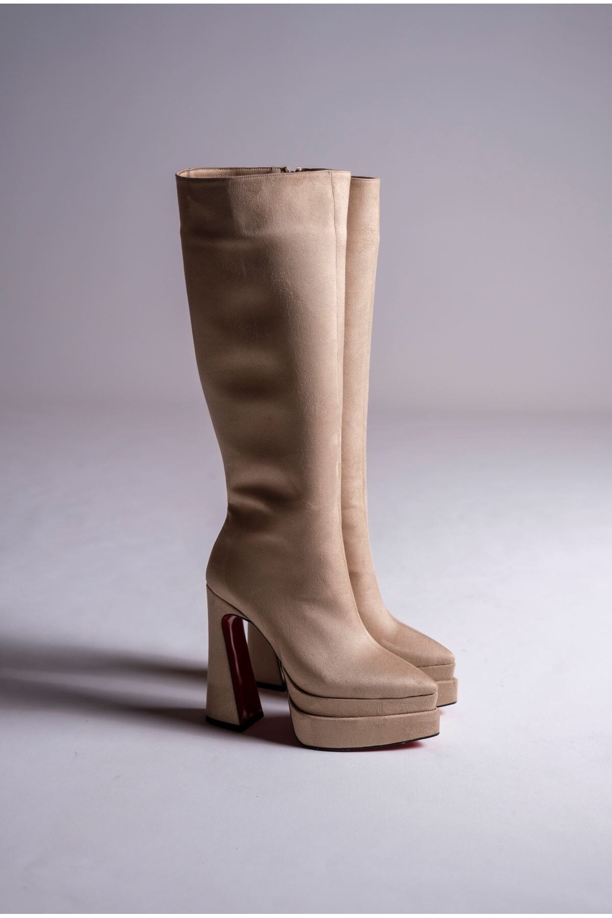 Kadın Çift Platform Yüksek Topuklu Çizme Jolly Ten Süet