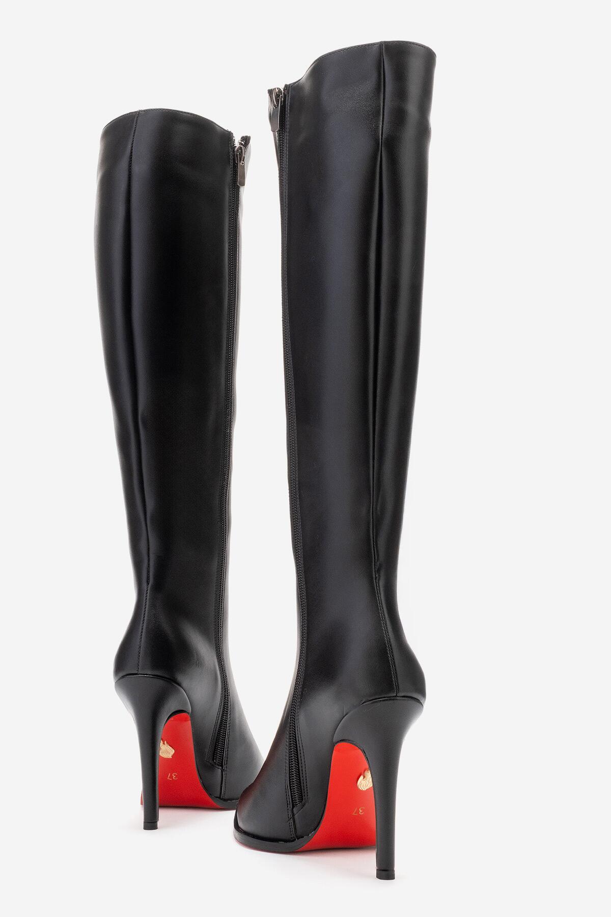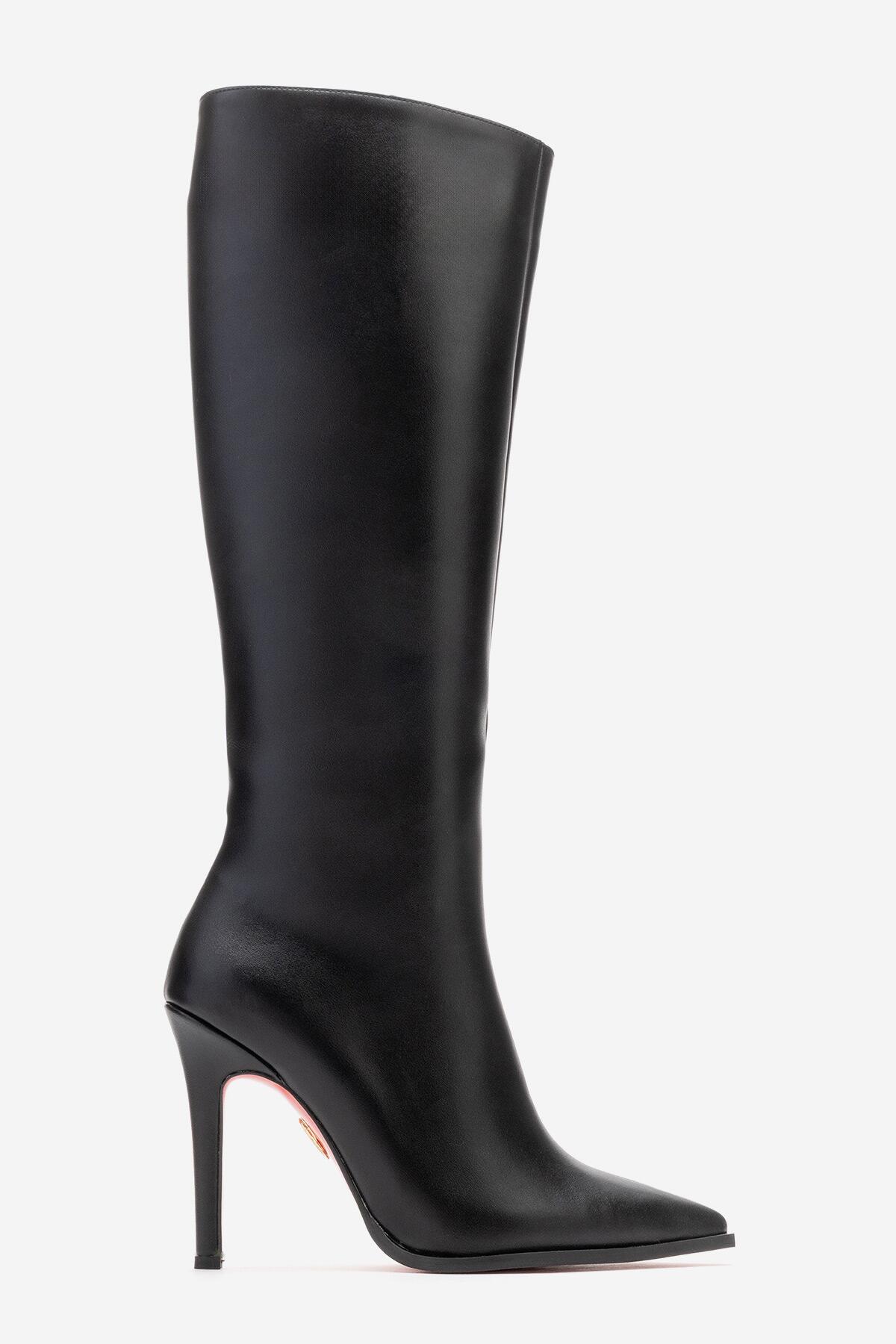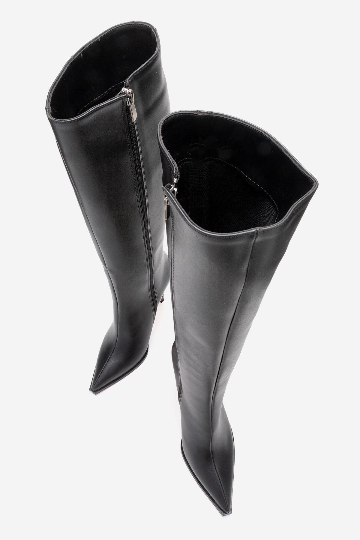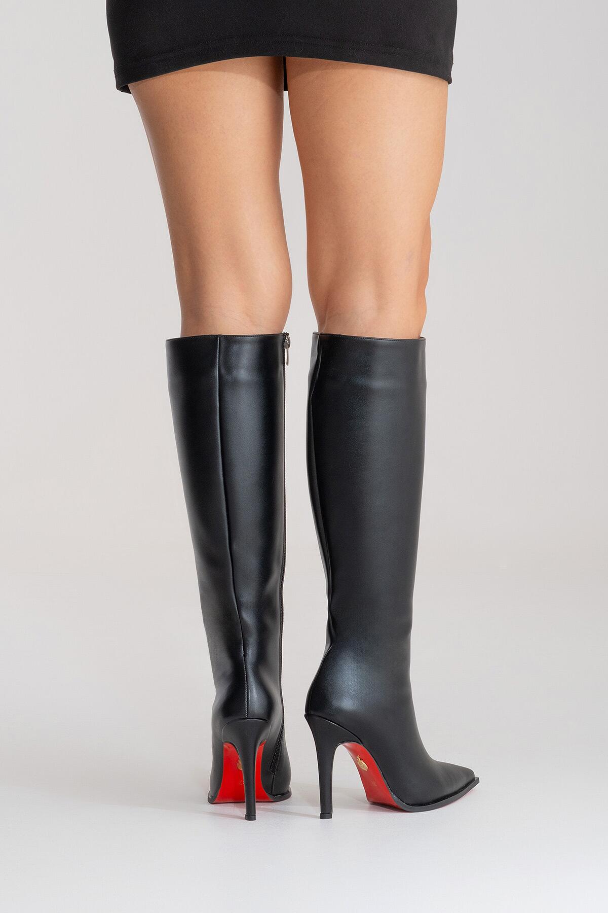 Kadın Diz Altı Fermuarlı İnce Topuklu Çizme Yoran Siyah Cilt