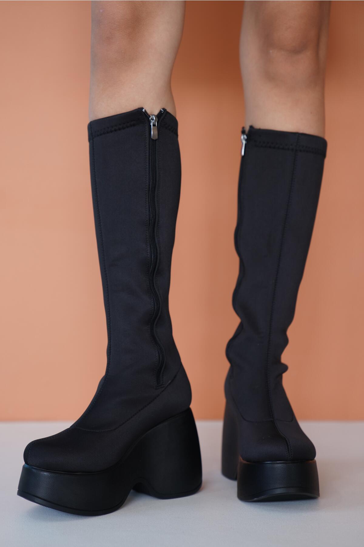 Kadın Çift Platform Yüksek Topuklu Çizme Jolly