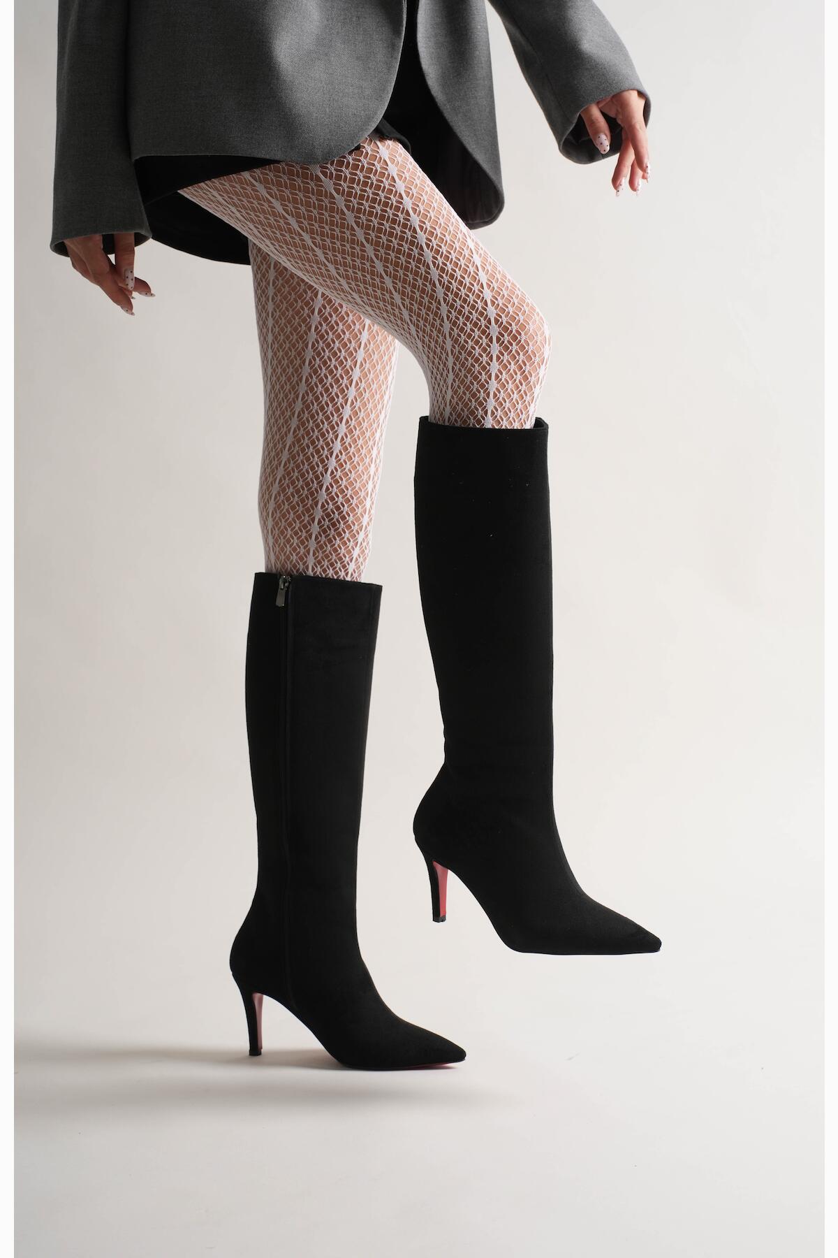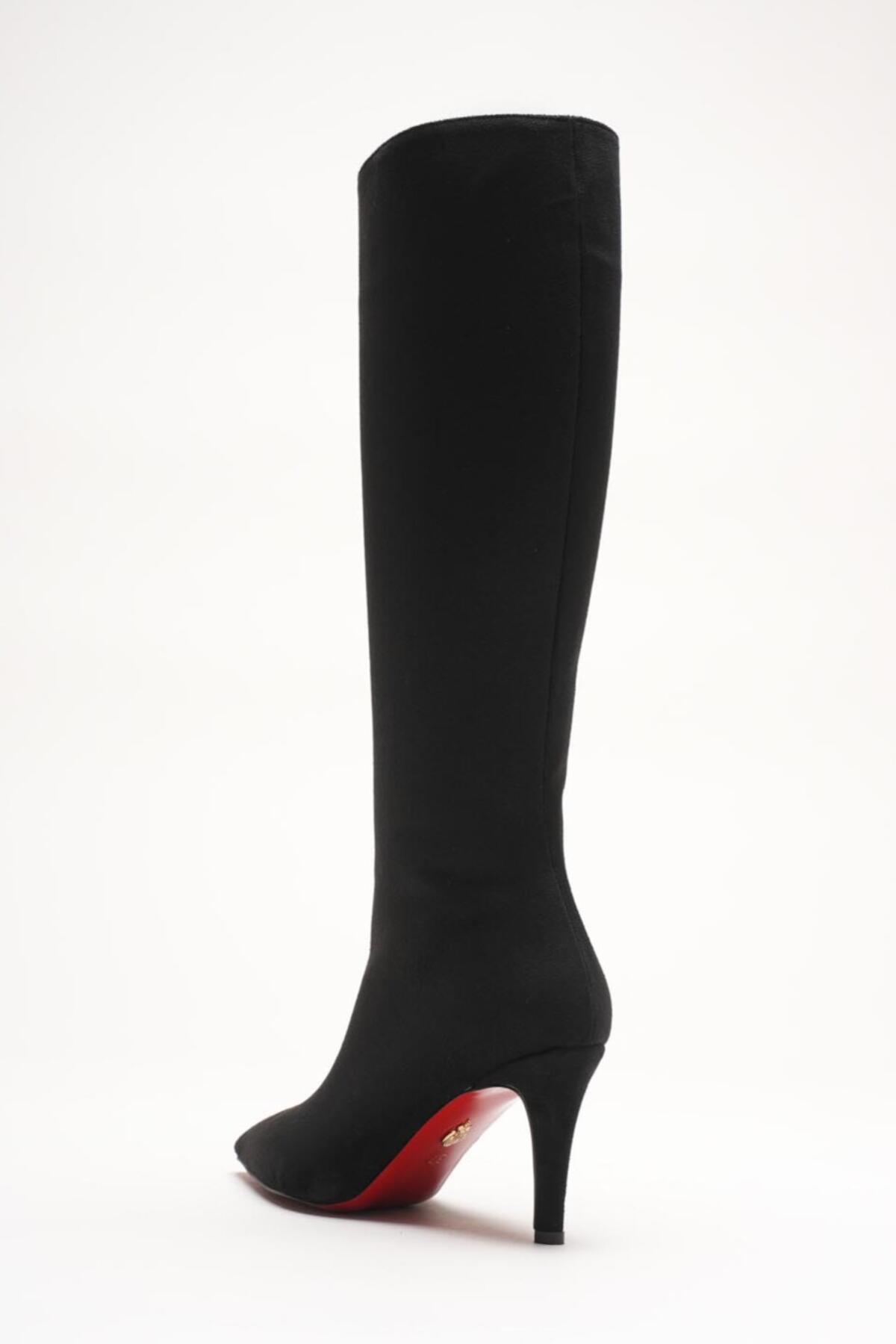Kadın Sivri Burun Kısa Topuklu Çizme Zelda Siyah Süet