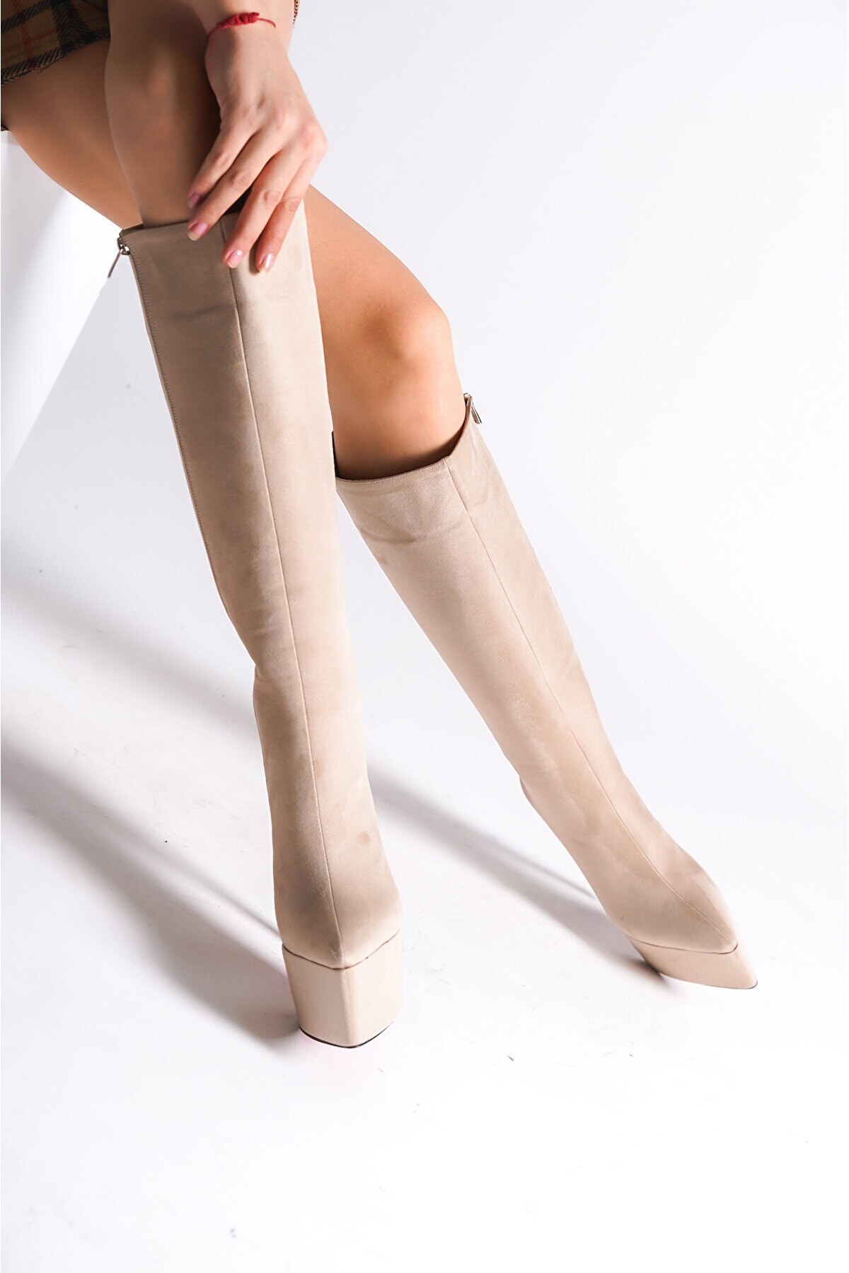 Kadın Sivri Burun Yüksek Topuklu Çizme Carmen Ten Süet