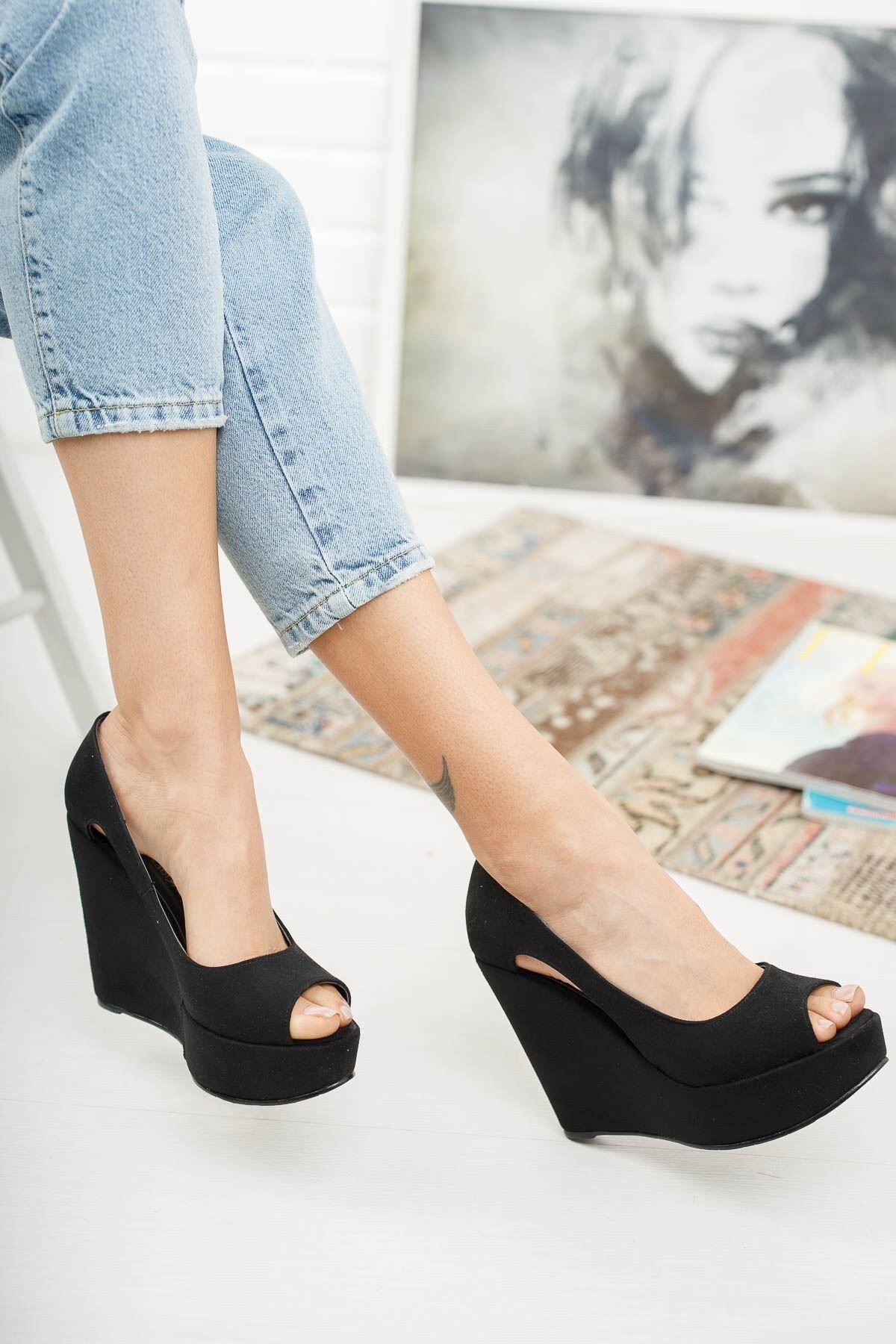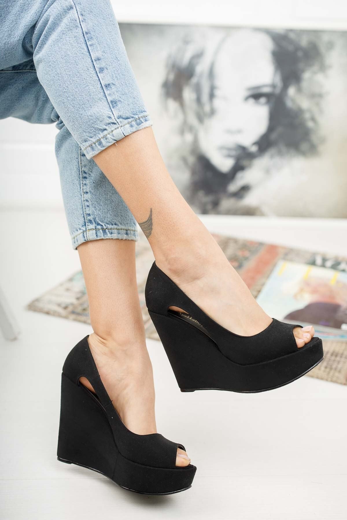 Kadın Dolgu Topuklu Ayakkabı Cosef Siyah Süet