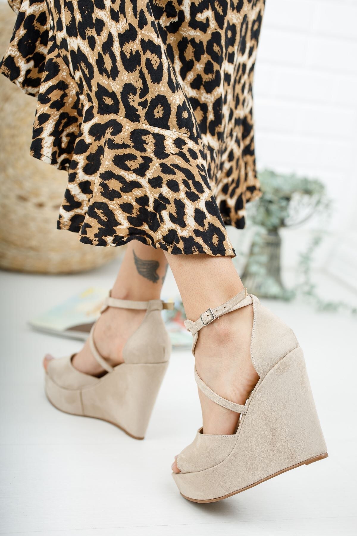 Kadın Tasarım Dolgu Topuklu Ayakkabı Hailey Ten Süet