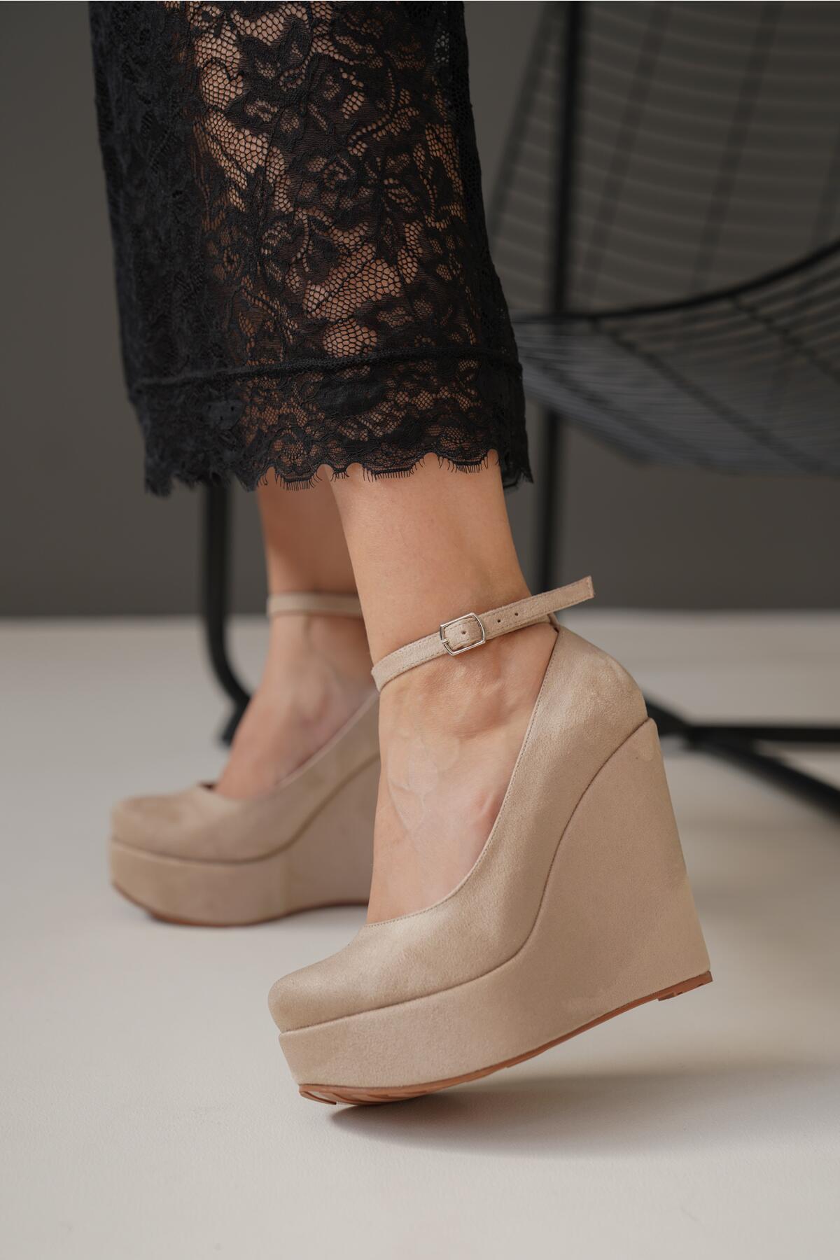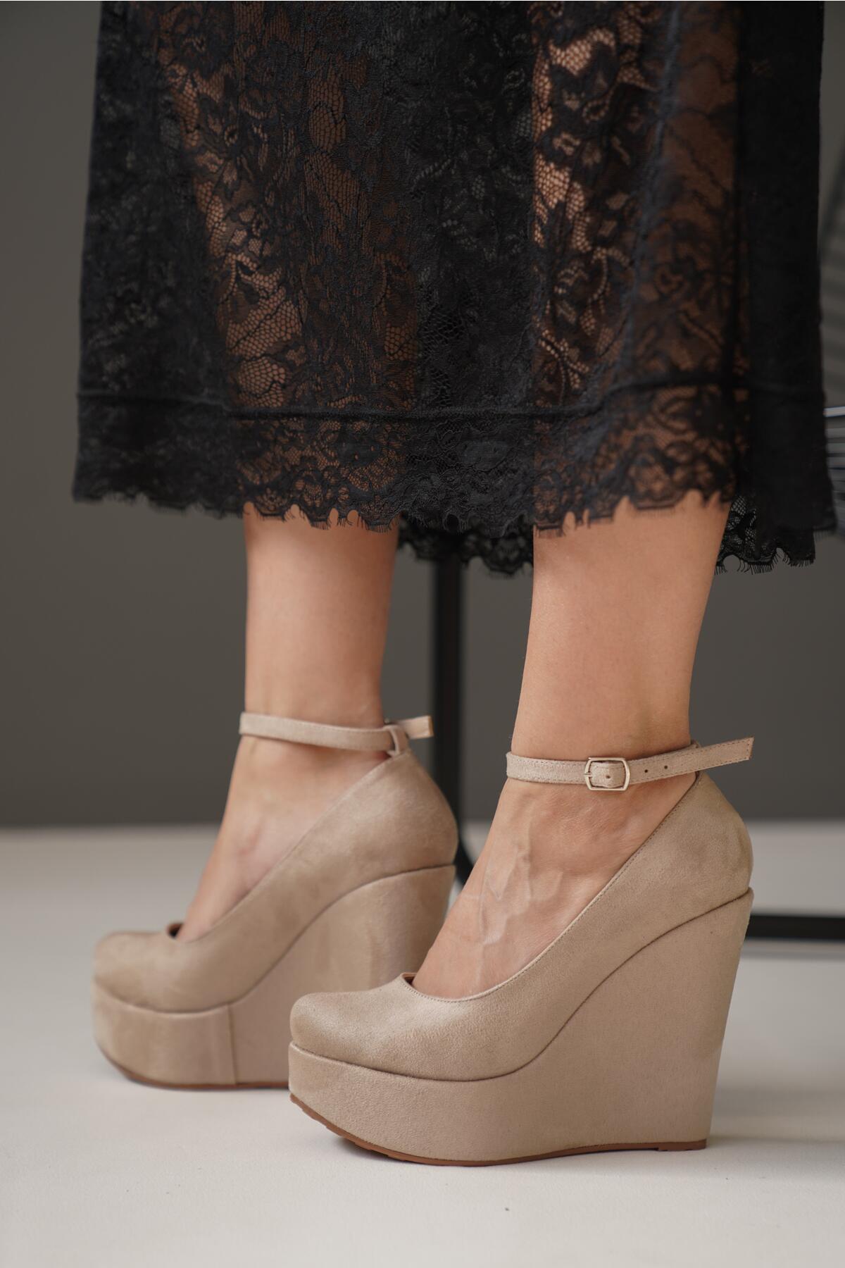 Kadın Dolgu Topuklu Kapalı Ayakkabı Pihu Ten Süet