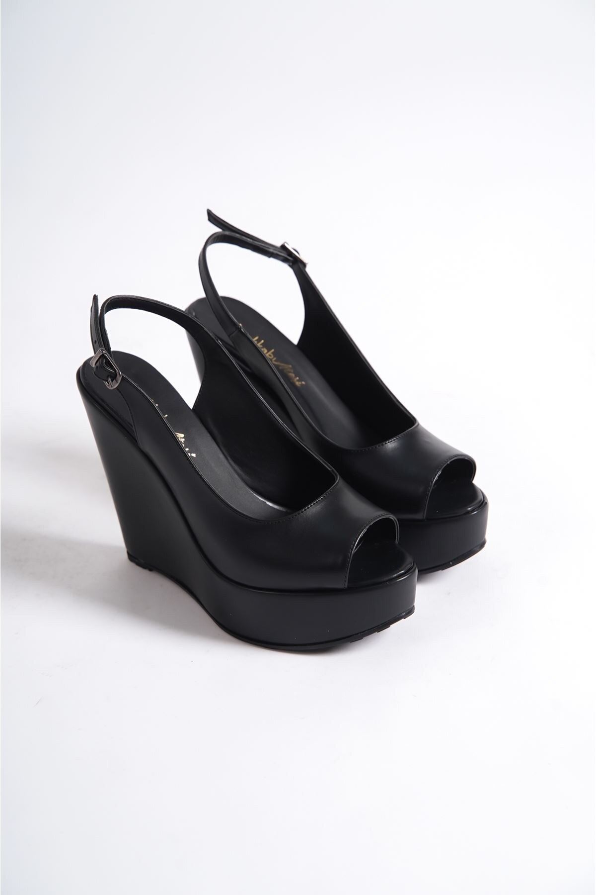 Kadın Arkası Açık Dolgu Topuklu Ayakkabı Kayla Siyah Cilt