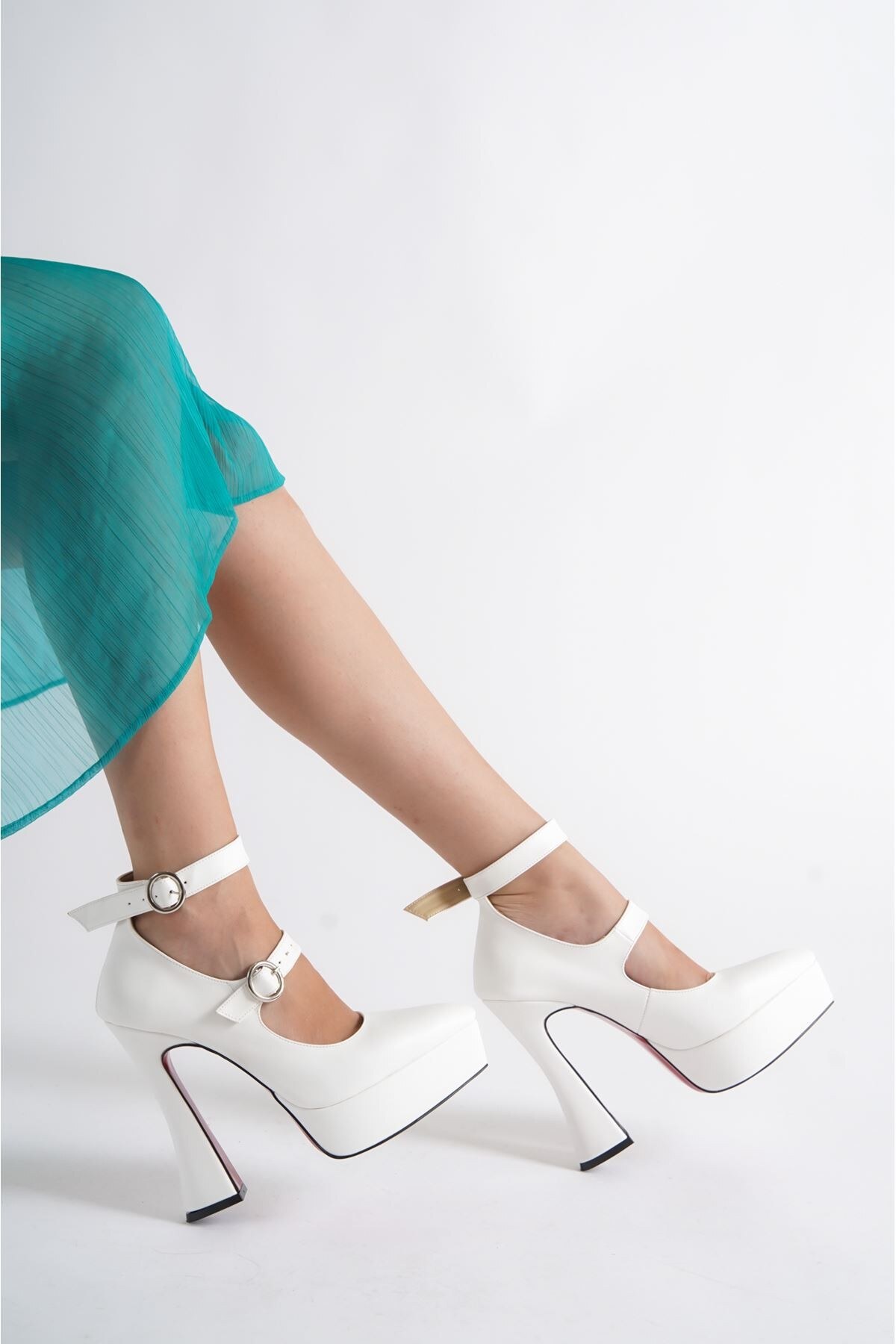 Kadın Baret Detaylı Özel Tasarım Platform Ayakkabı Akira Beyaz Cilt