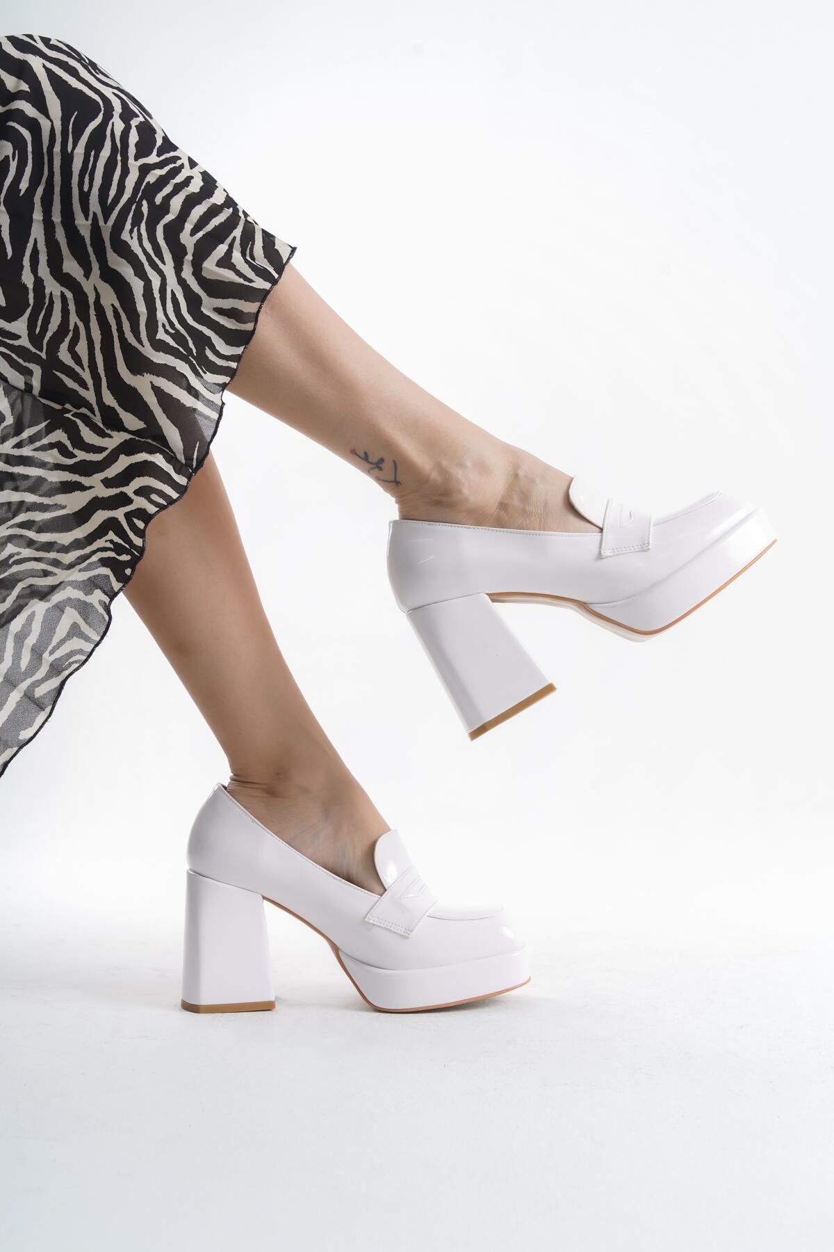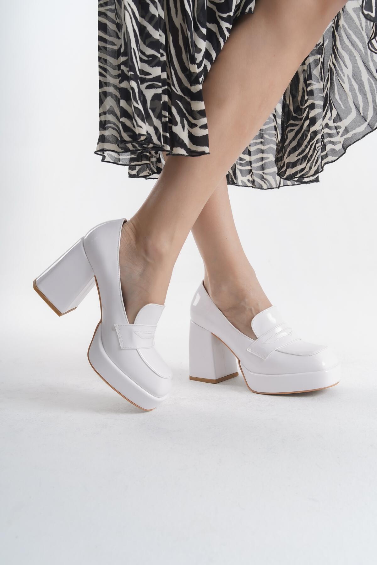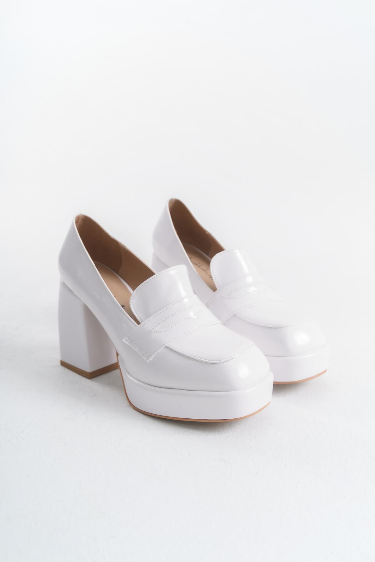 Kadın Platform Kalın Topuklu Loafer Harrie Beyaz