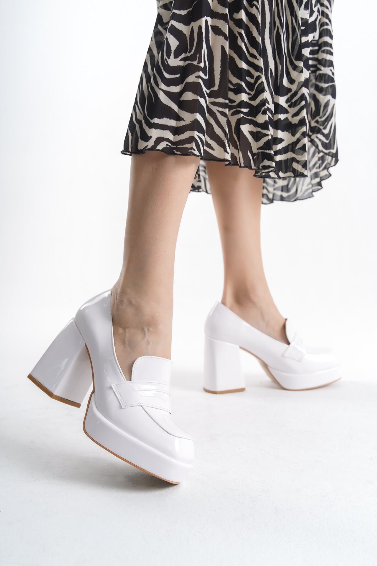 Beyaz Rugan Tek Bantlı Kadın Topuklu Ayakkabı Lorane