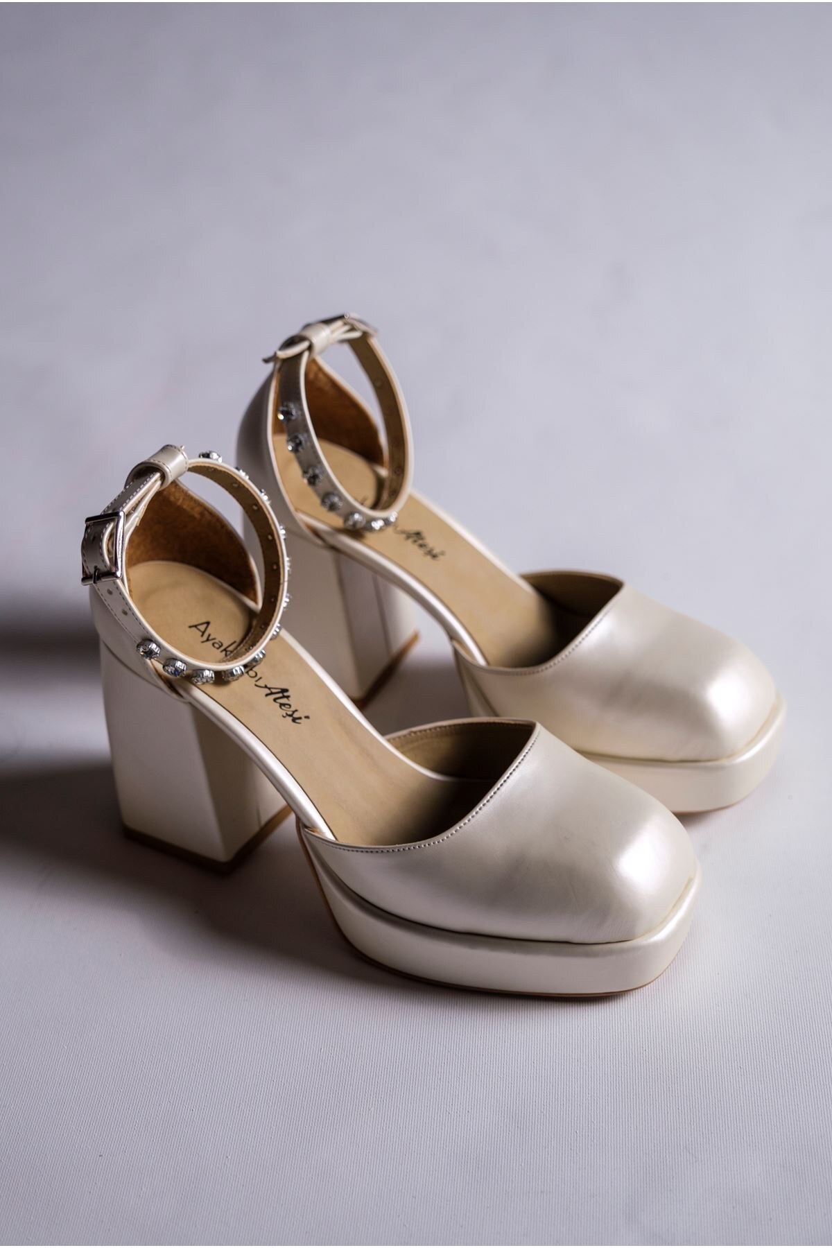 Kadın Taş Detaylı Özel Tasarım Alçak Topuklu Ayakkabısı Sandy Sedef