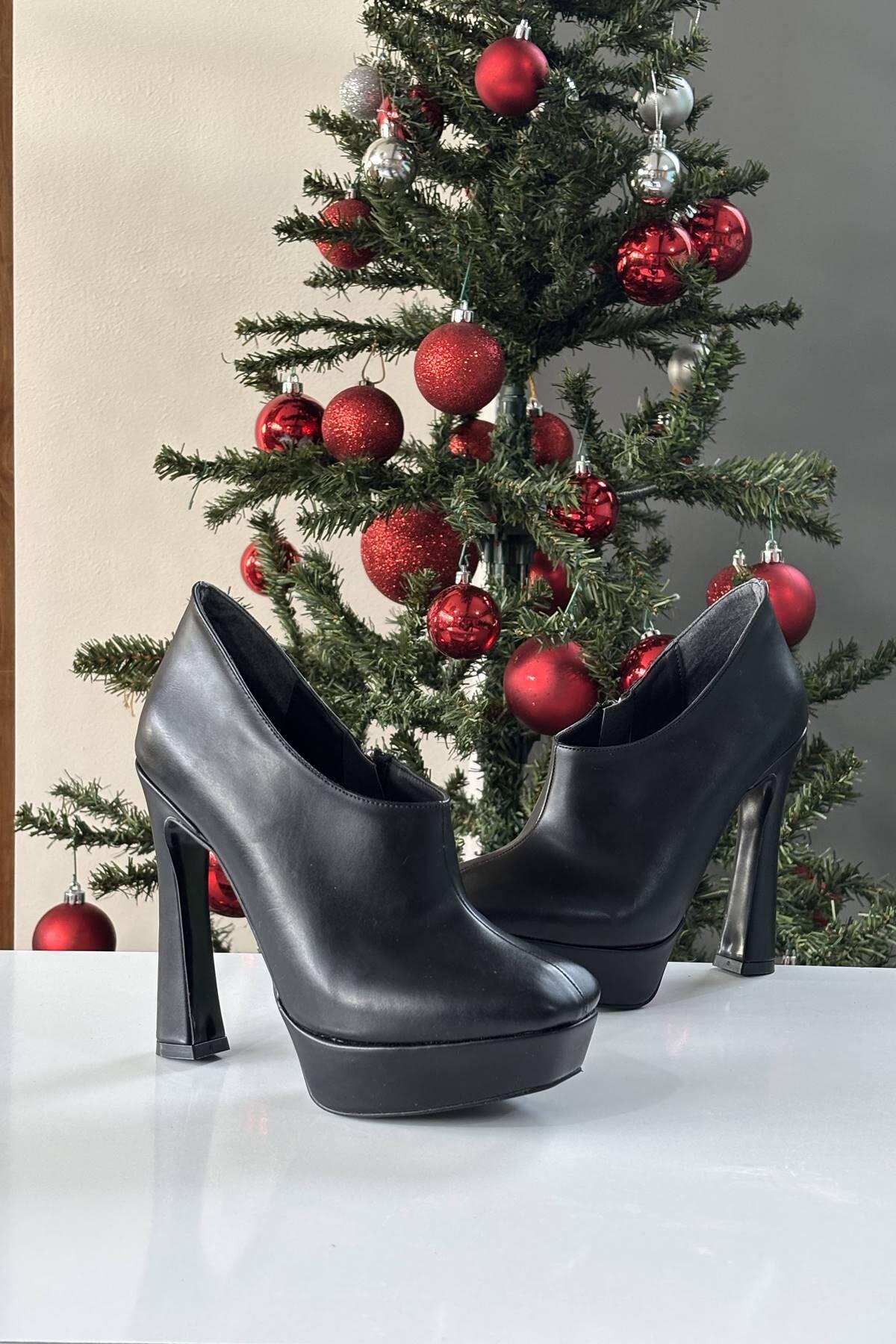 Siyah Cilt Platform Kadın Boti Siyah Cilt