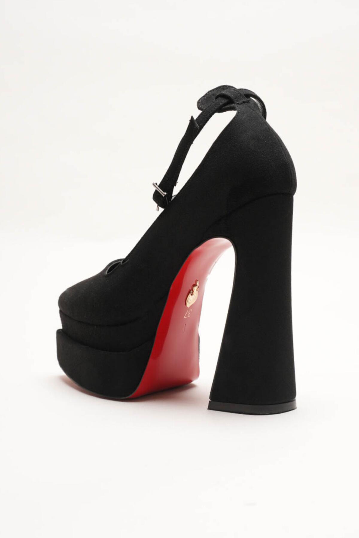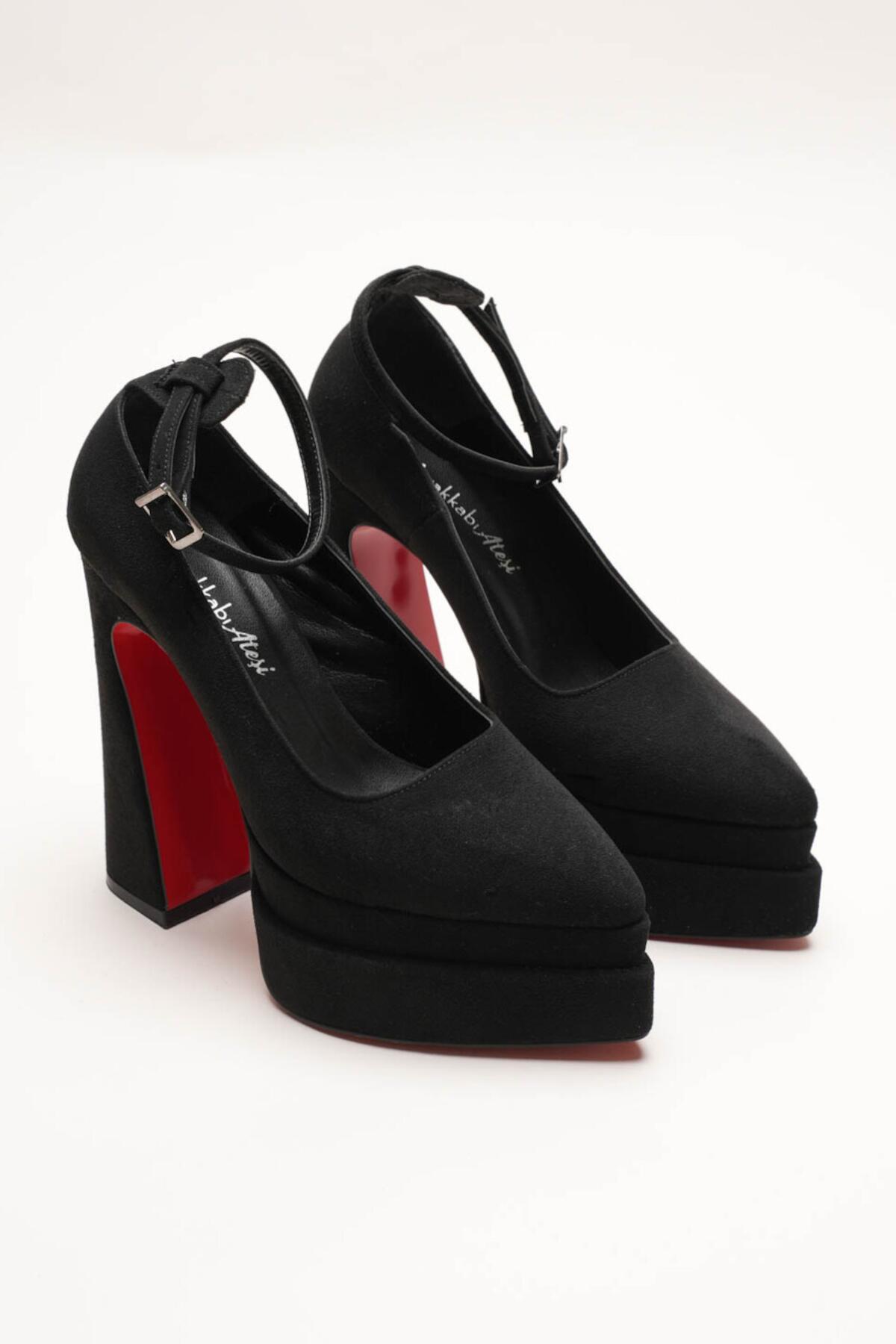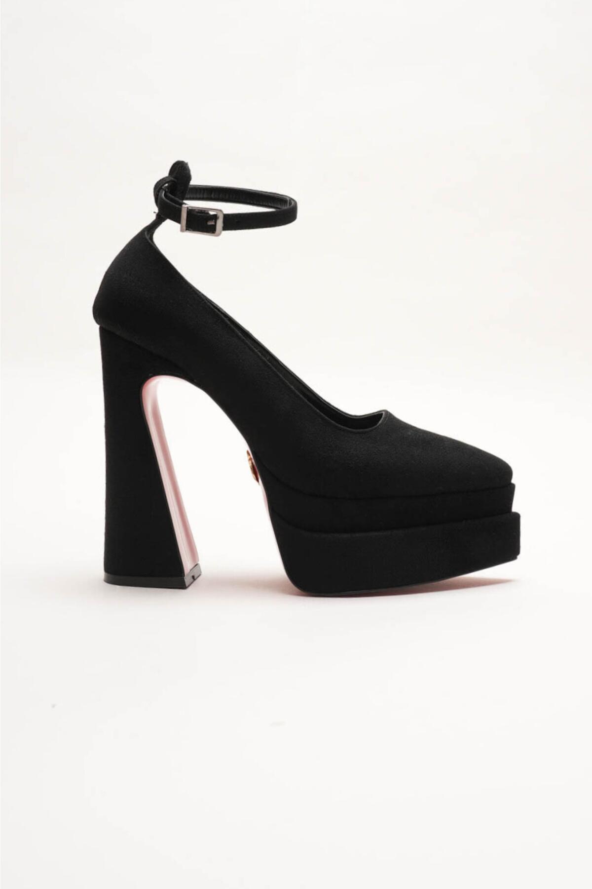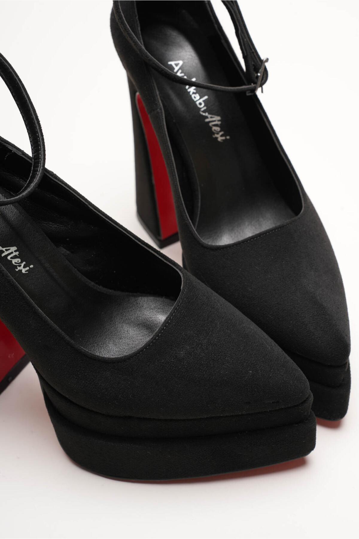 Çift Platform Özel Tasarım Kadın Ayakkabı Rigels Siyah Süet
