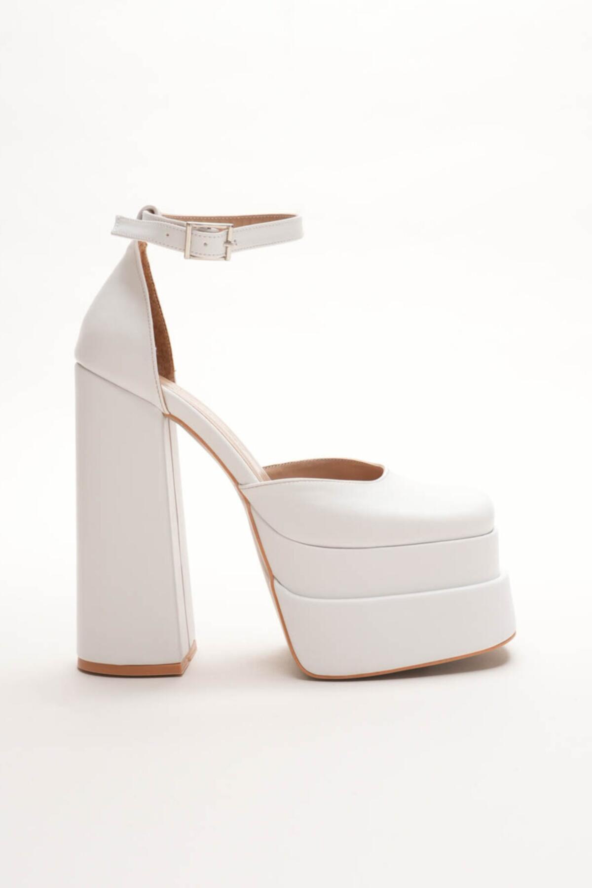 Sezonun en trend akımlarından biri olan çift platform (double platform) modasını yansıtan bu ayakkabı, stilinize anında güçlü ve cesur bir dokunuş katıyor. Beyaz Cilt dokusu ile lüks bir görünüm sunarken, özel tasarım kalın blok topuğu ile yüksekliğine rağmen maksimum konfor ve denge sağlar.
