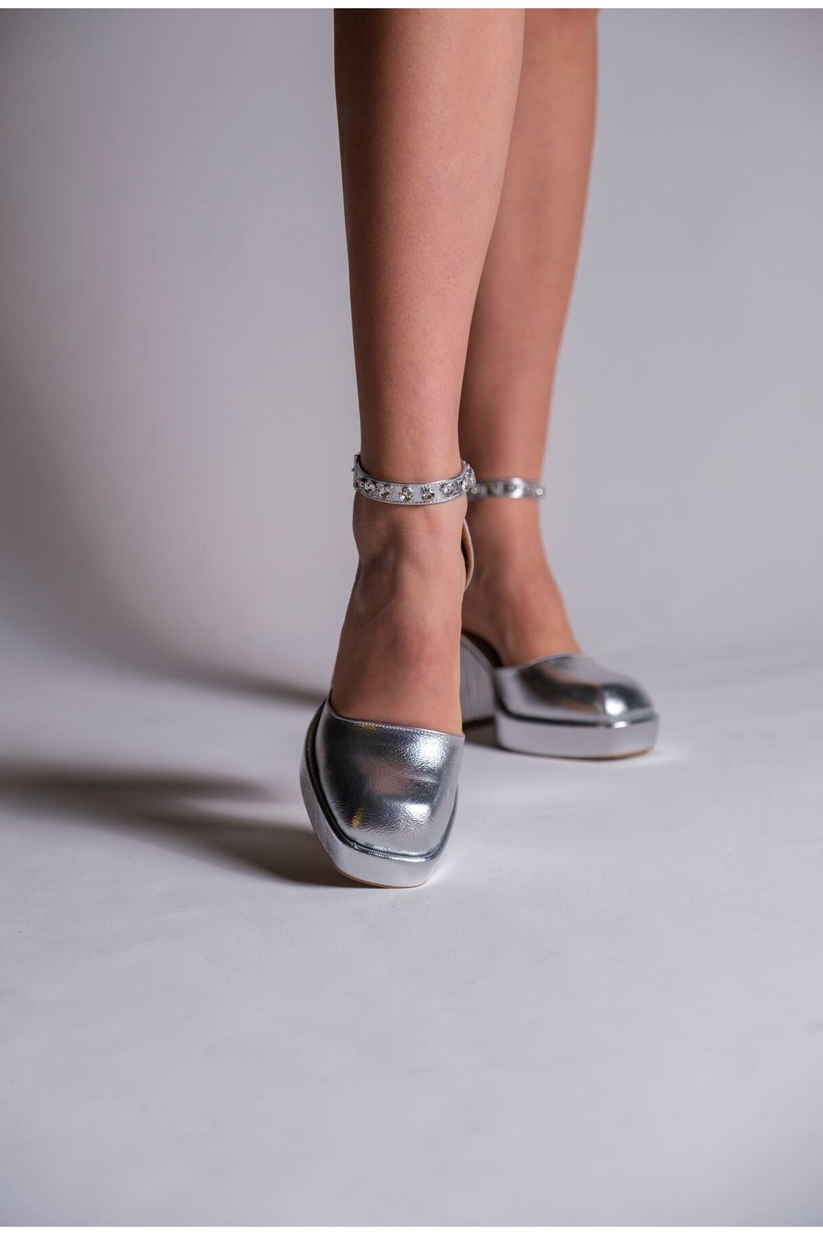 Kadın Taş Detaylı Özel Tasarım Alçak Topuklu Ayakkabısı Sandy Gümüş
