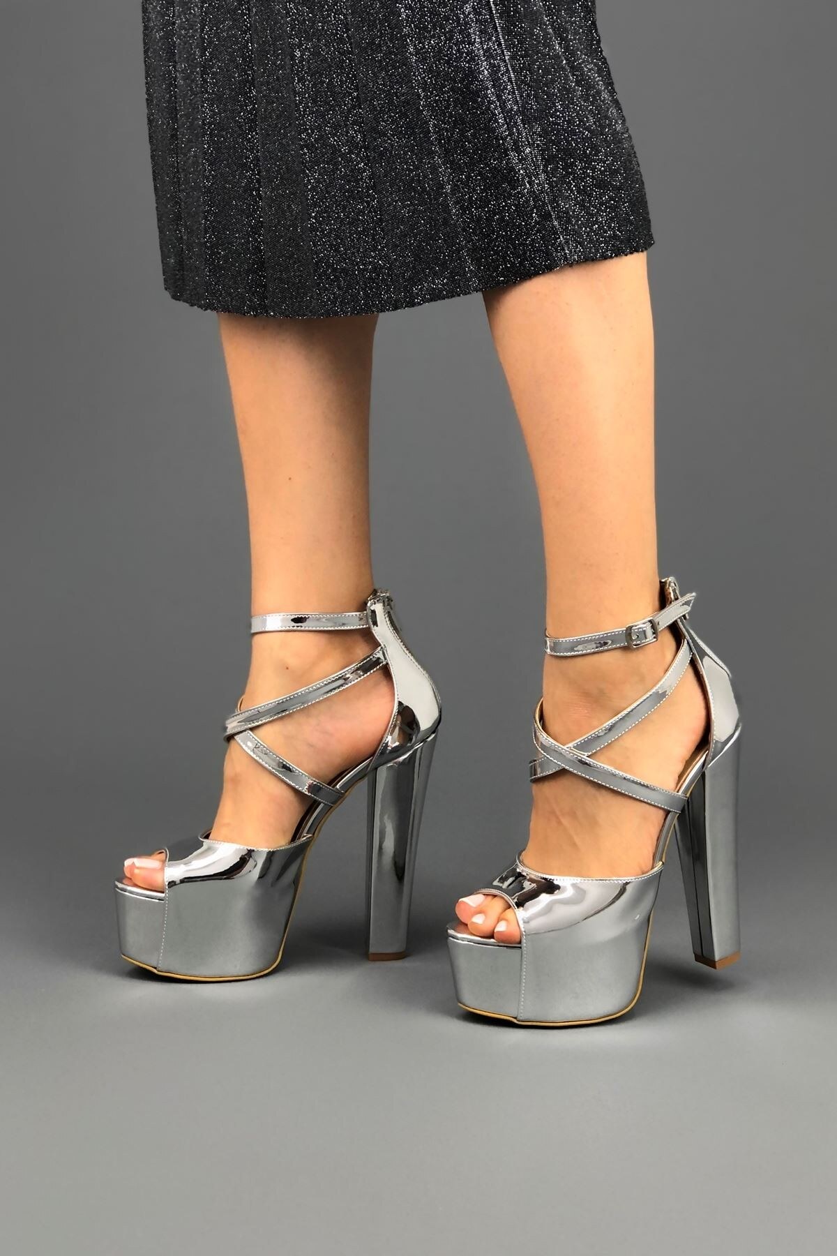 Kadın Yüksek Topuklu Platform Ayakkabı Young Gümüş