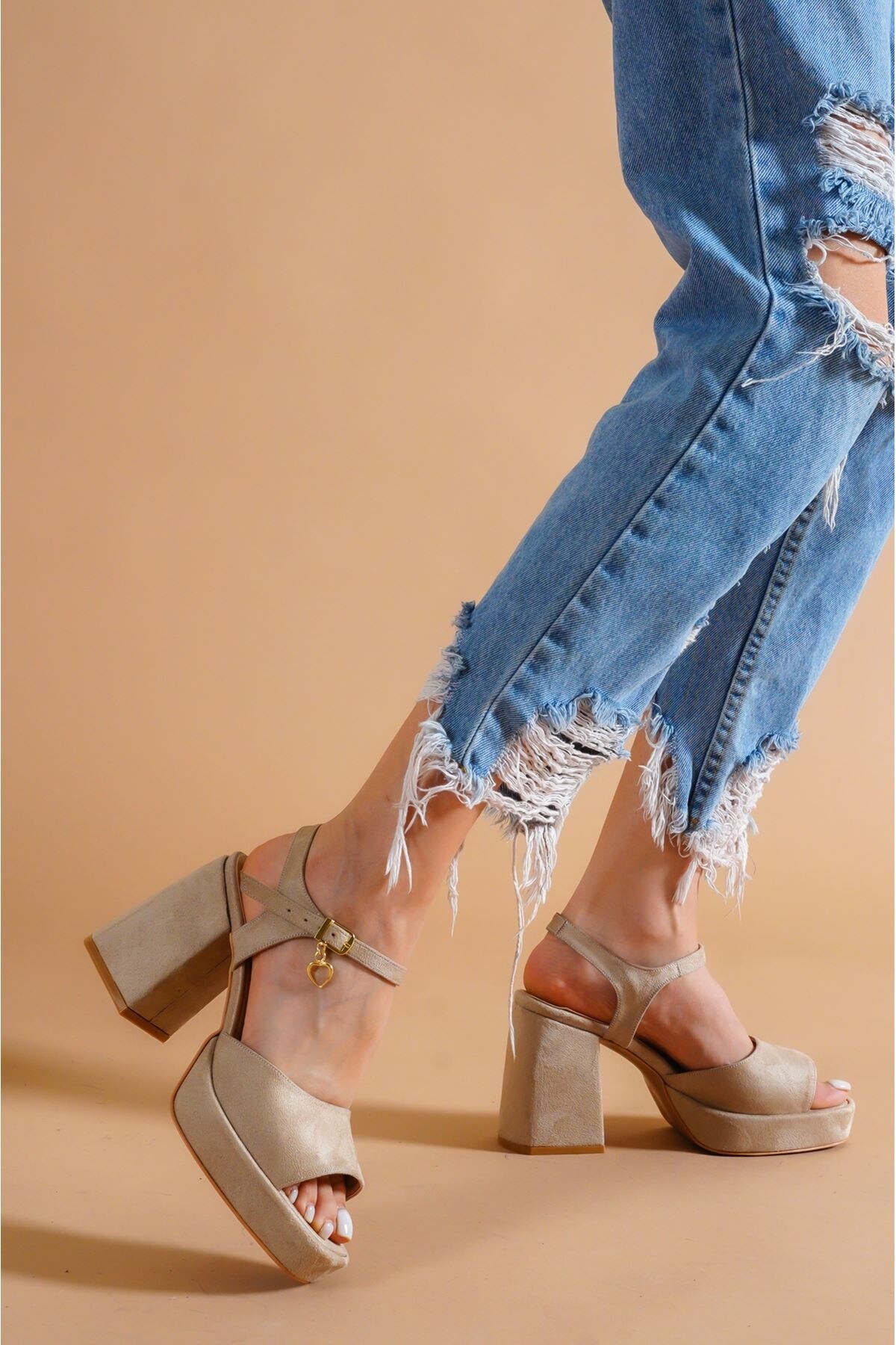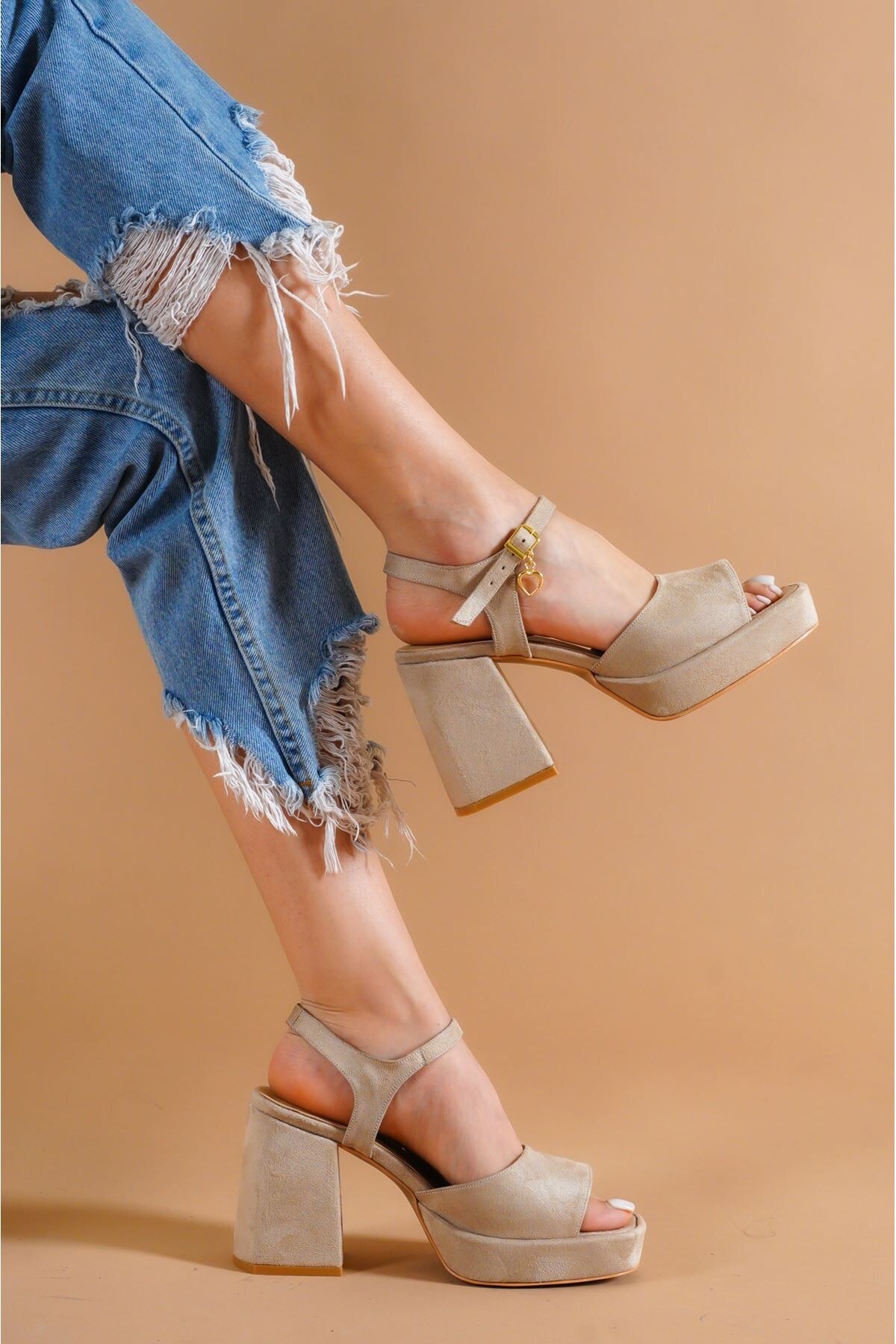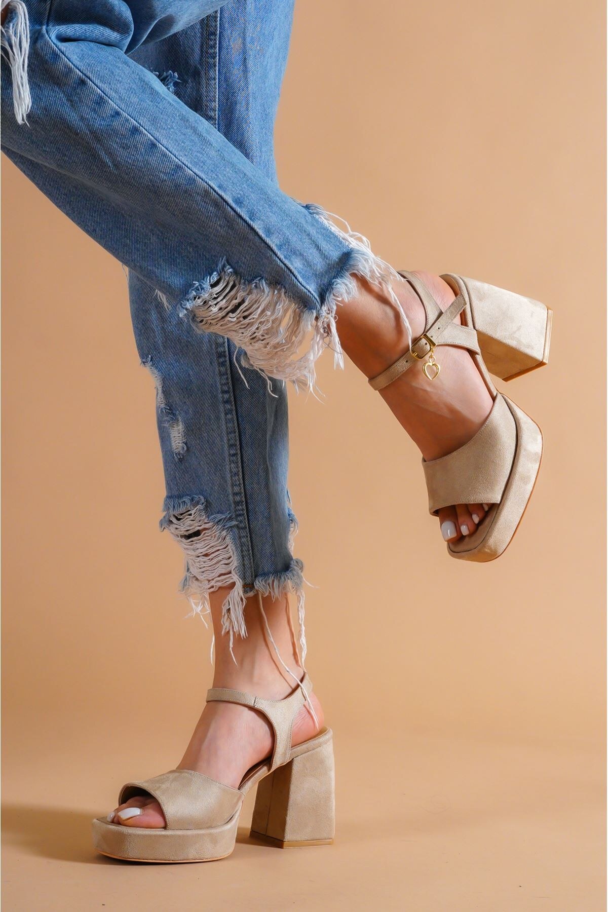 Kadın Alçak Platform Topuklu Ayakkabı Amelia Ten Süet