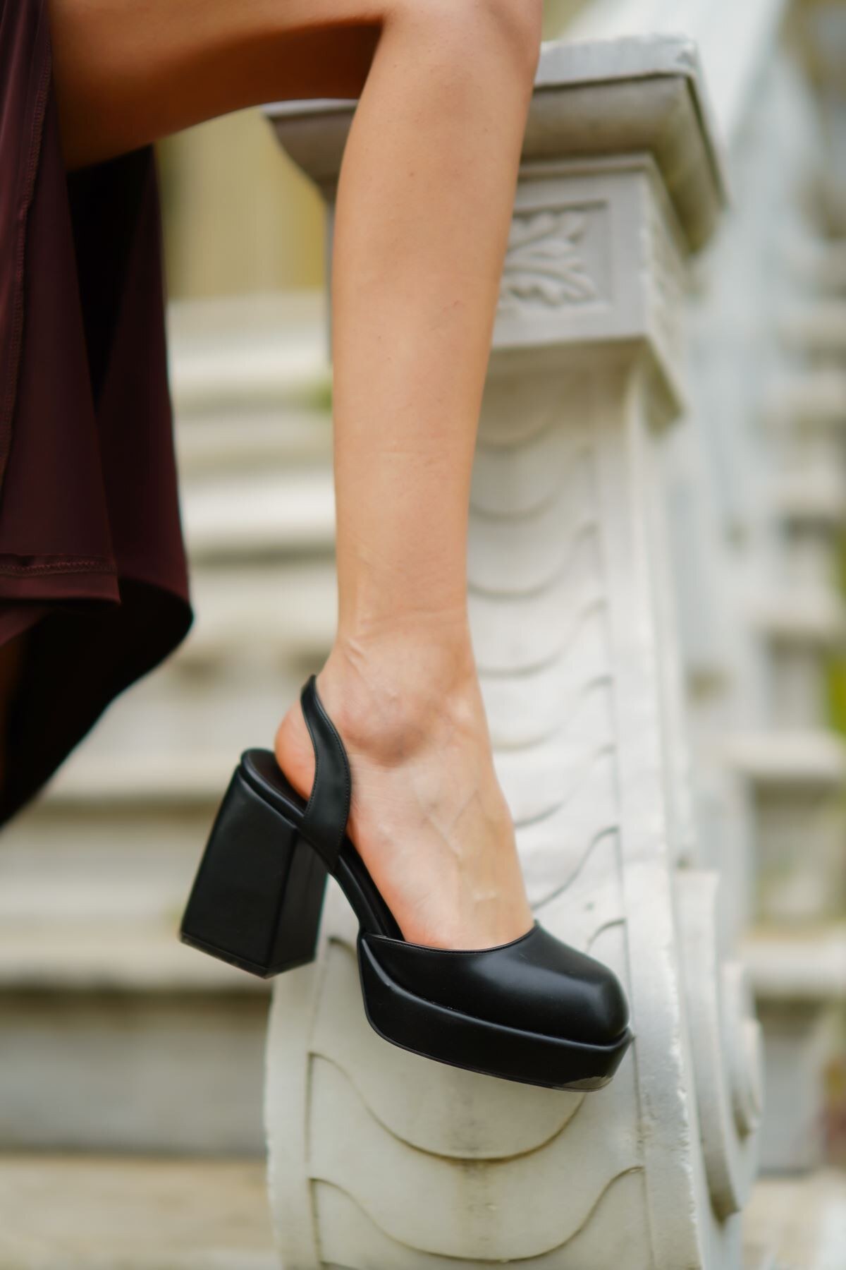 Kadın Alçak Platform Topuklu Ayakkabı Laura Siyah Cilt