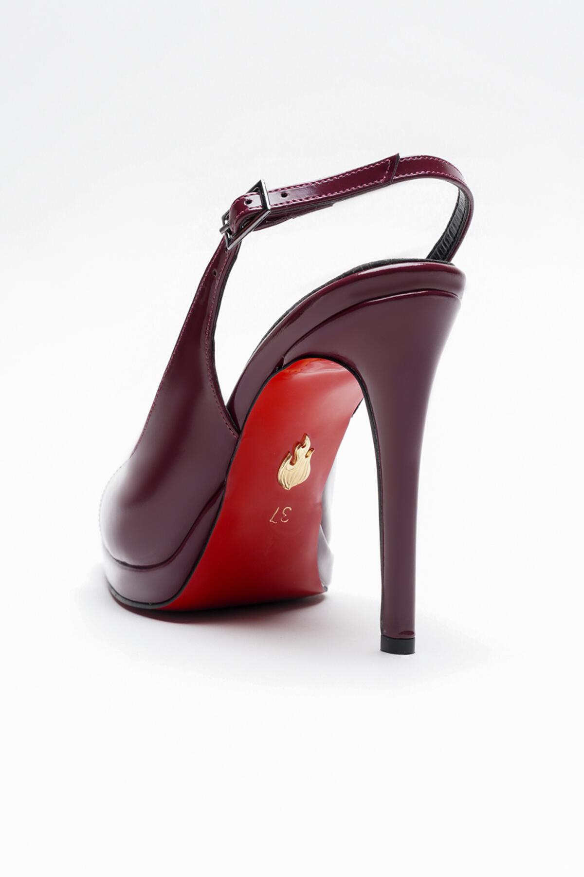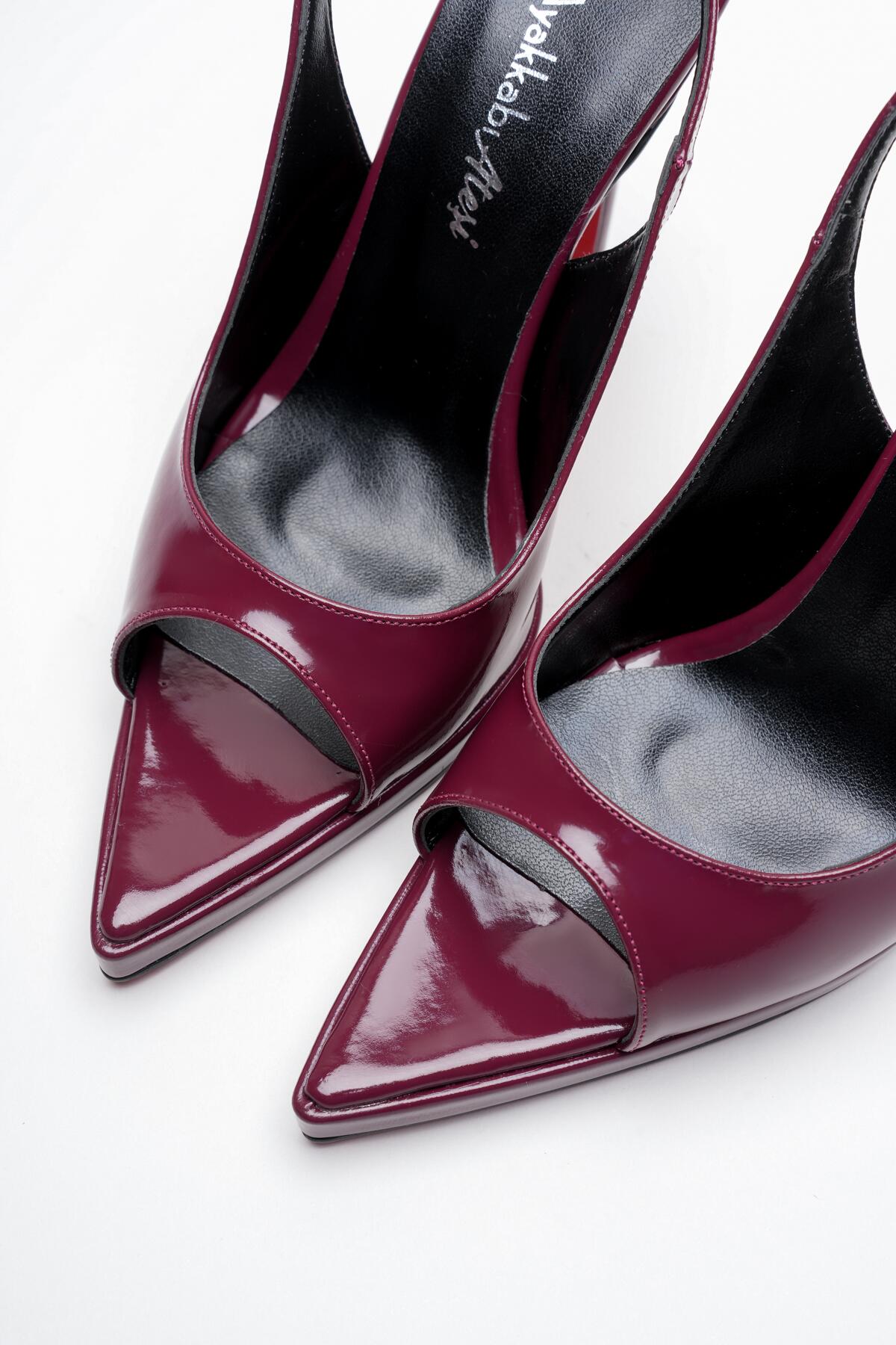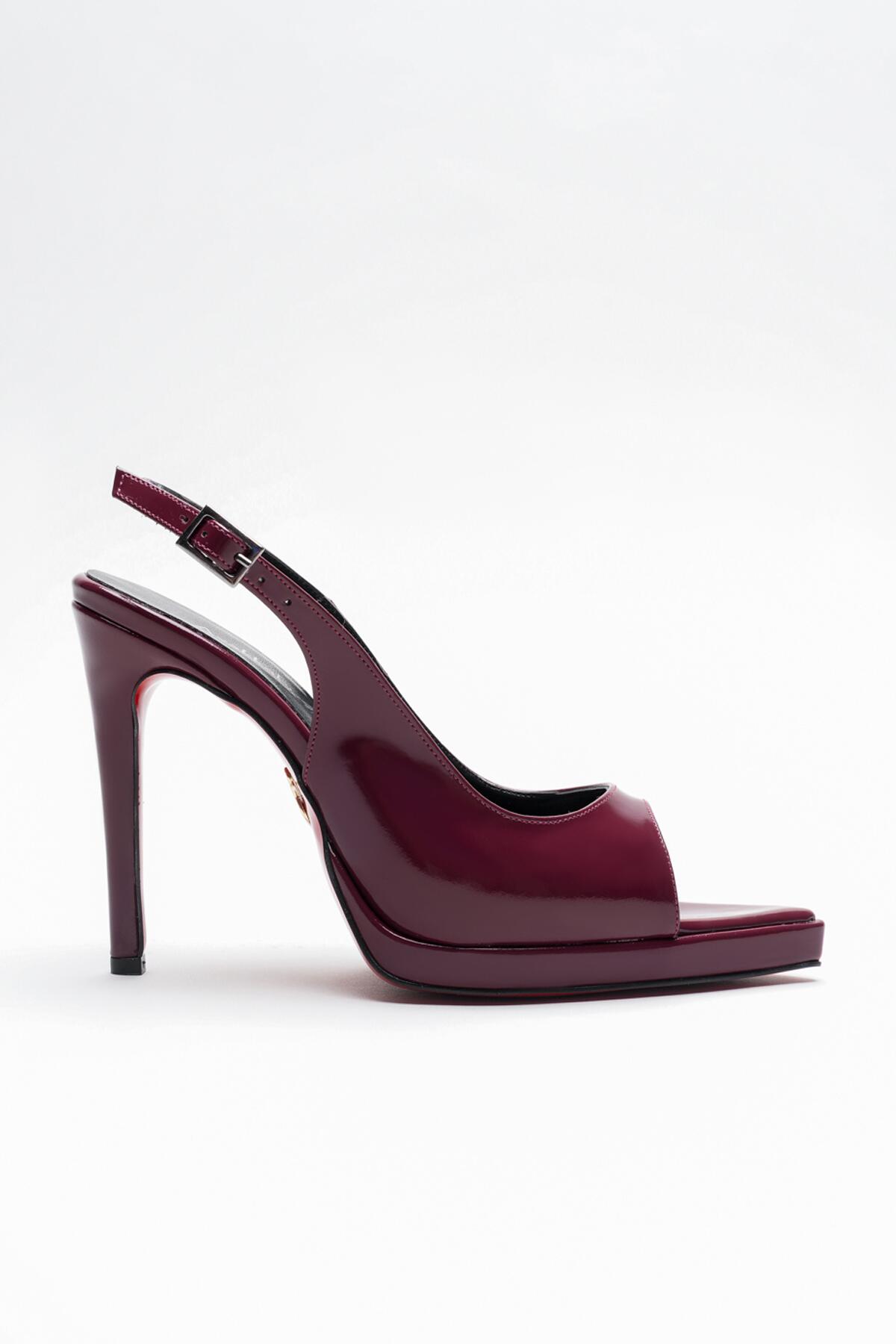 Kadın Arka Açık Sivri Burun İnce Topuklu Platform Ayakkabı Hari Bordo Rugan
