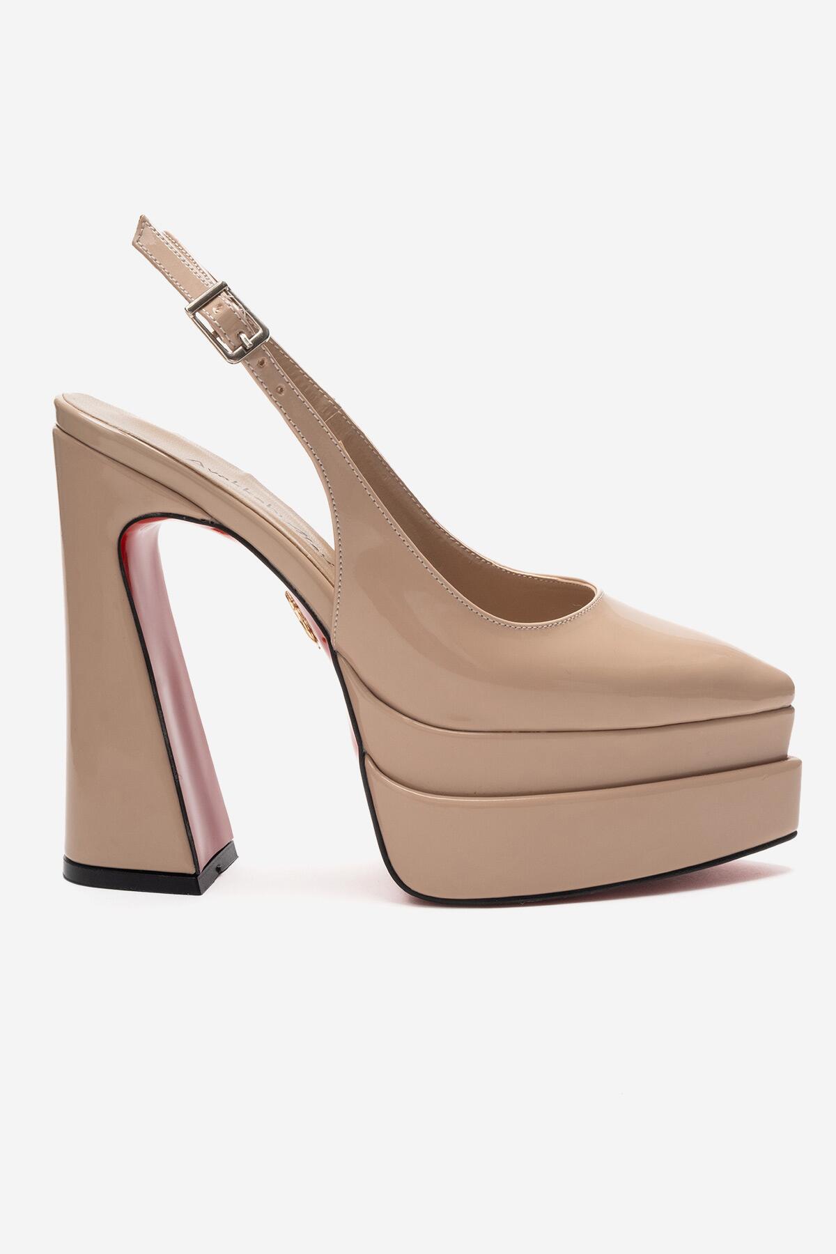 Kadın Arkası Açık Sivri Burun Çift Platform Yüksek Topuklu Ayakkabı Medelo Nude Rugan