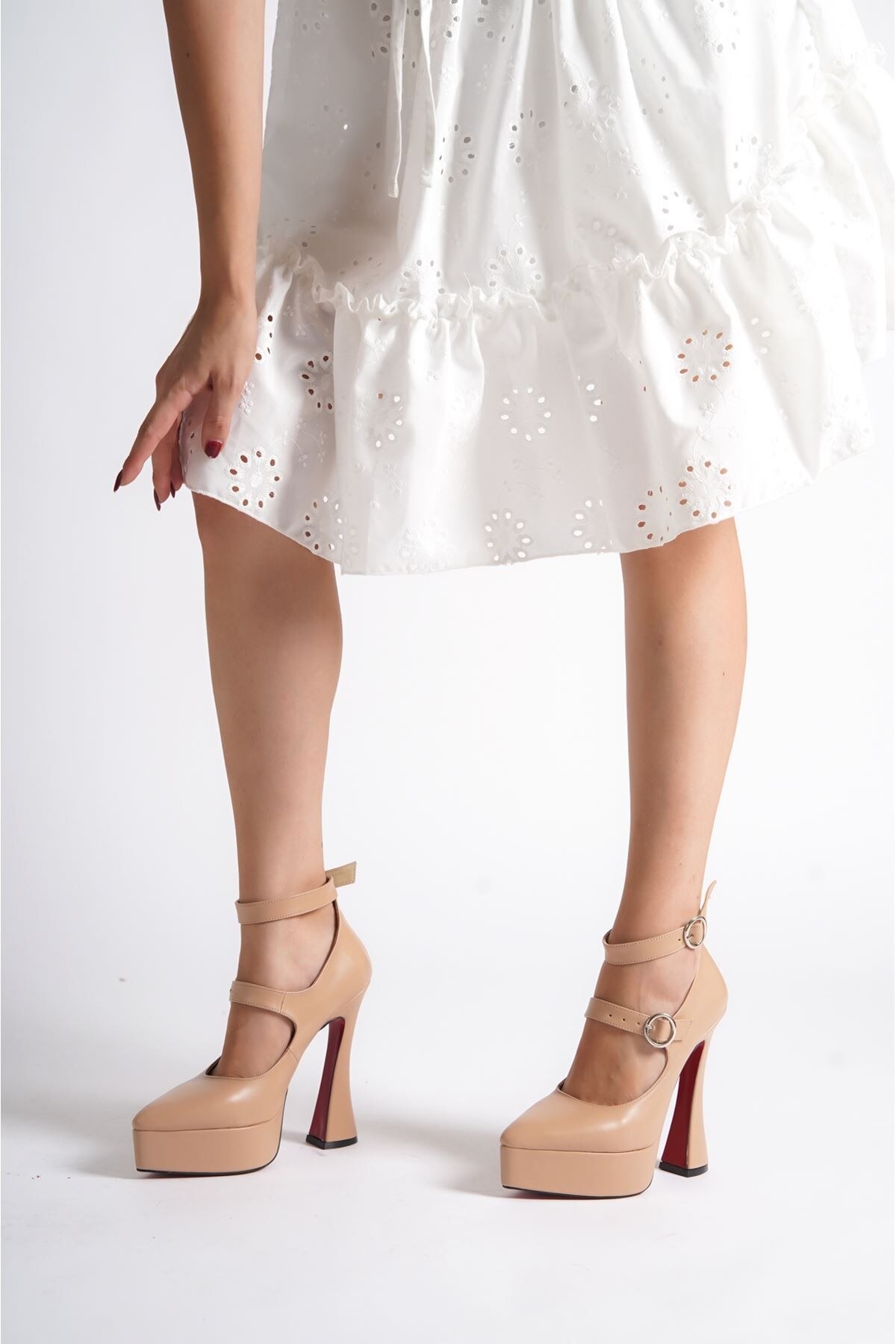 Kadın Baret Detaylı Özel Tasarım Platform Ayakkabı Akira Nude Cilt
