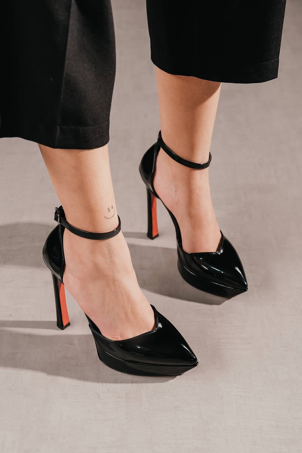 Kadın Baretli Platform Topuklu Ayakkabı Accies Siyah Rugan