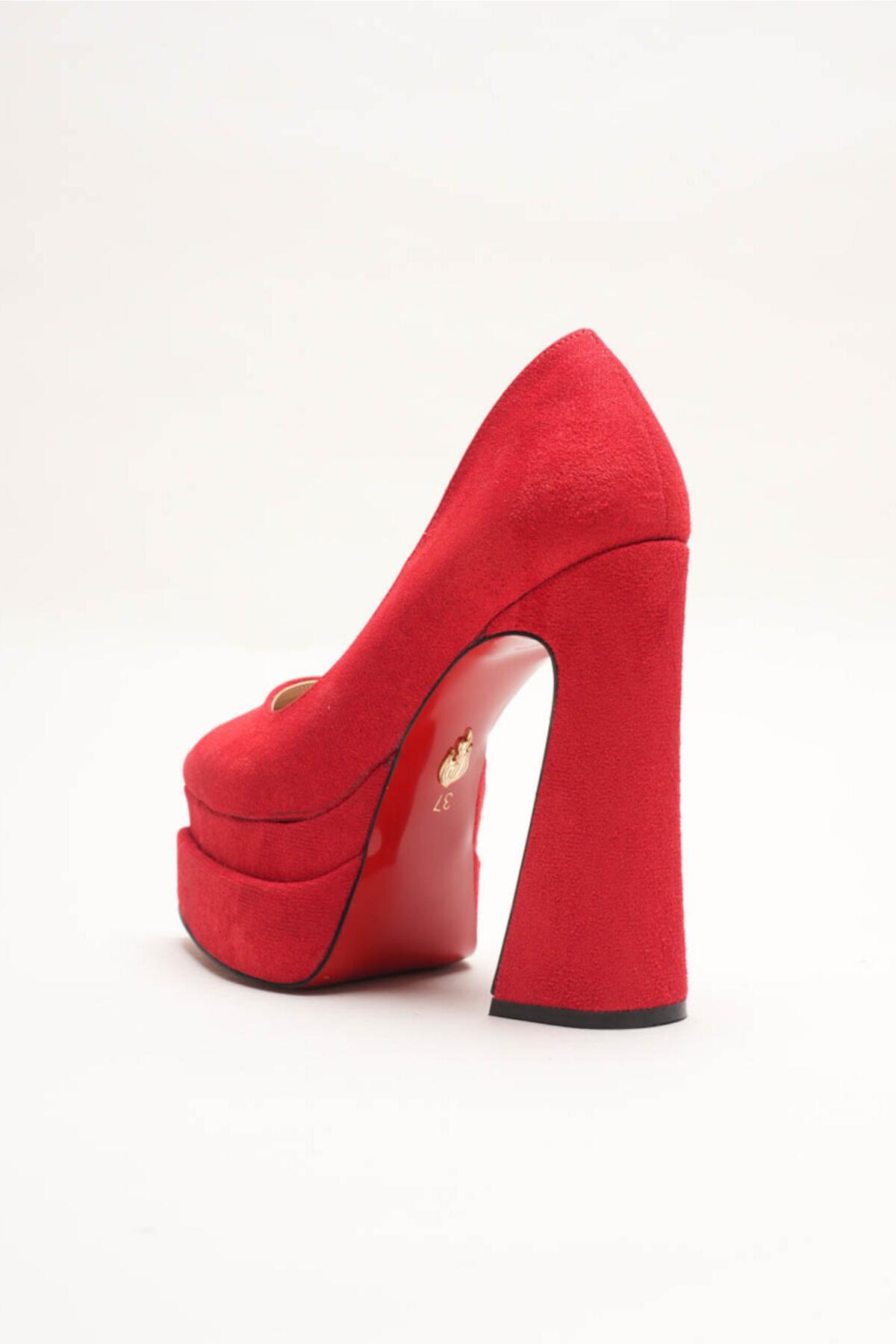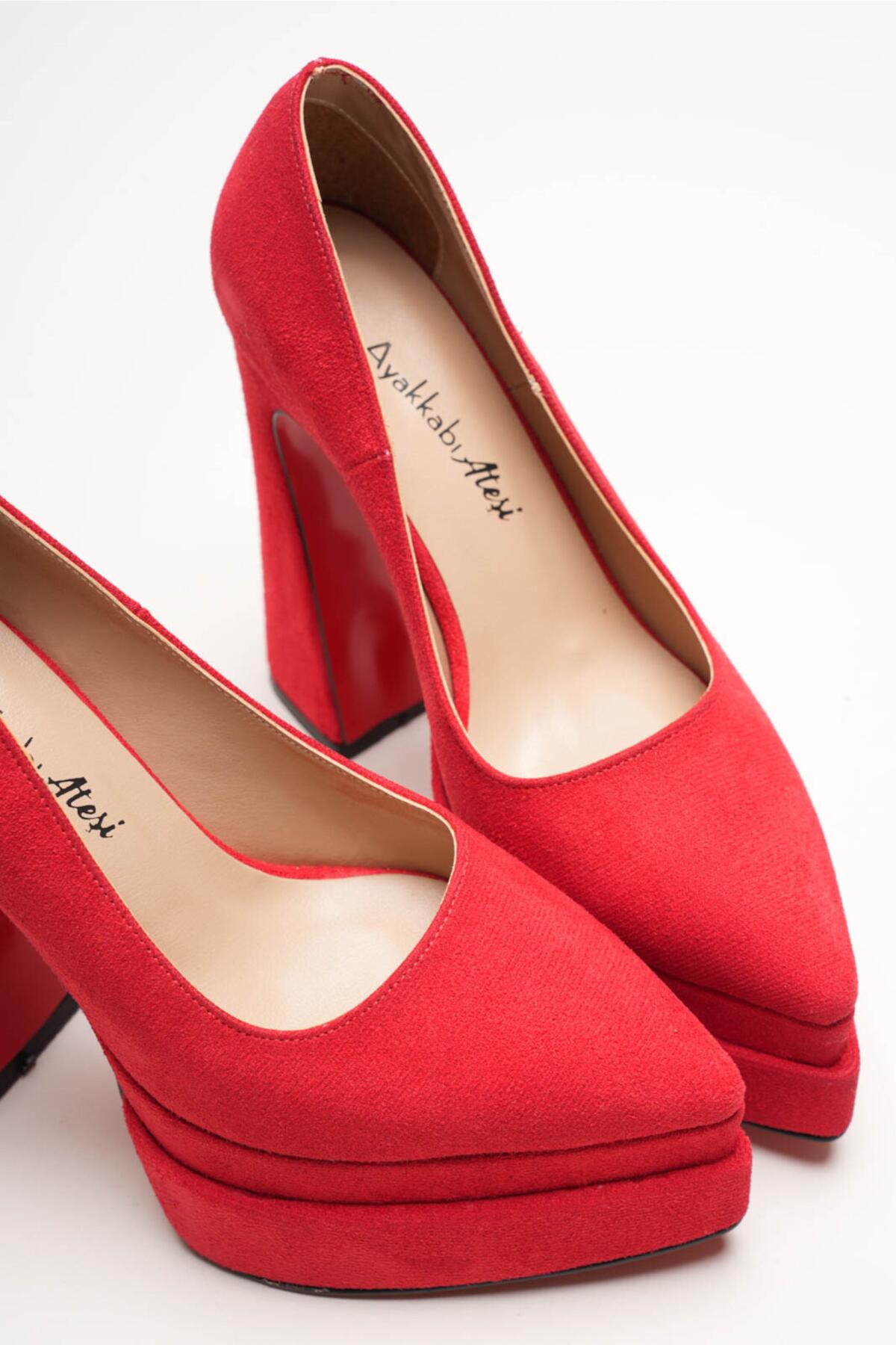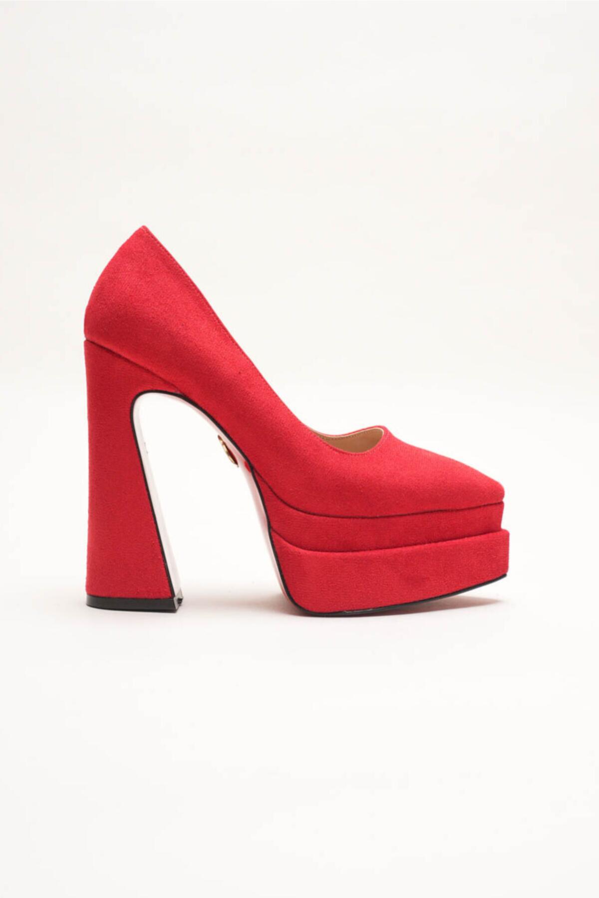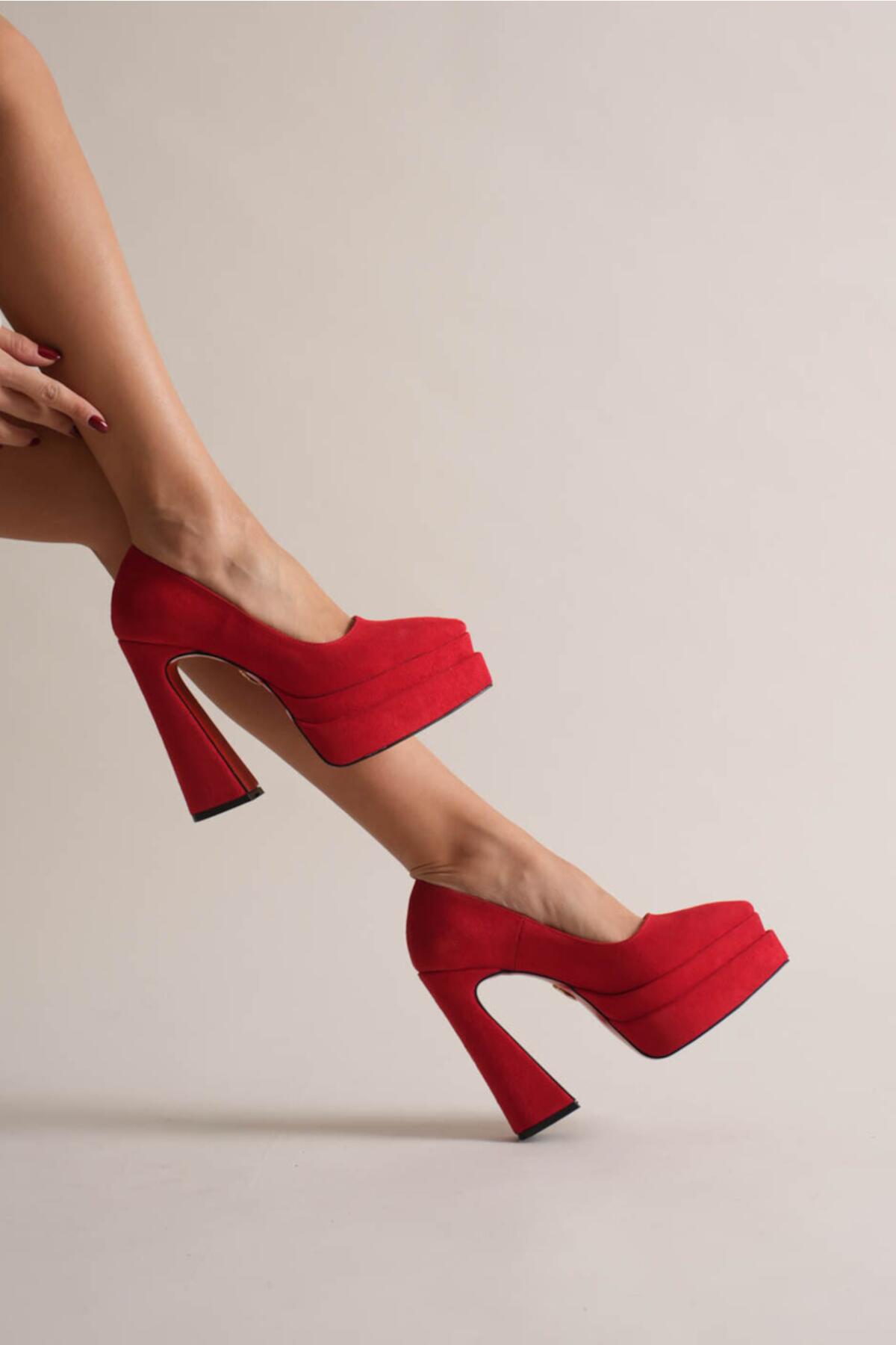 Kadın Çift Platform Özel Tasarım Kadın Ayakkabı Rigel Kırmızı Süet