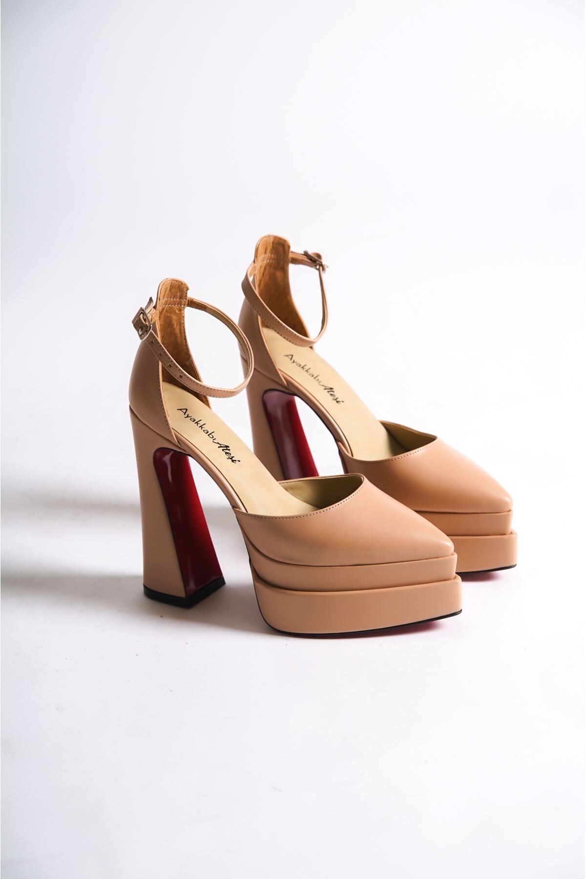 Kadın Çift Platform Özel Tasarım Topuklu Ayakkabı Regina Nude Cilt