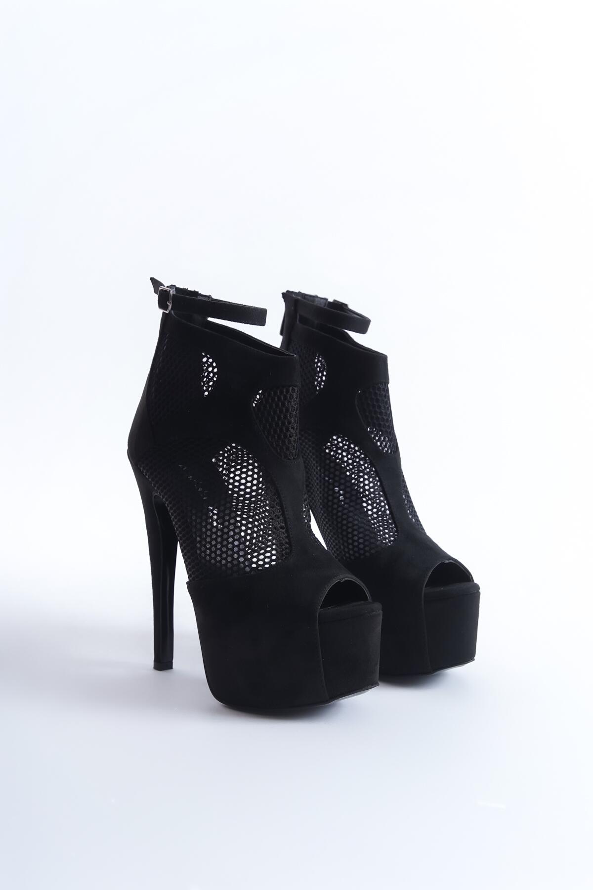 Kadın Fileli İnce Topuklu Ayakkabı Leoni Siyah Süet