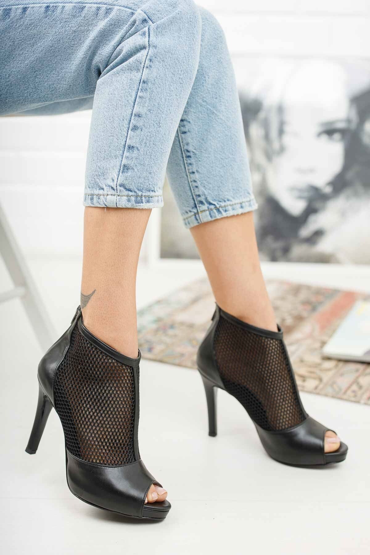 Kadın İnce Topuklu Alçak Platform Ayakkabı Coleen Siyah Cilt