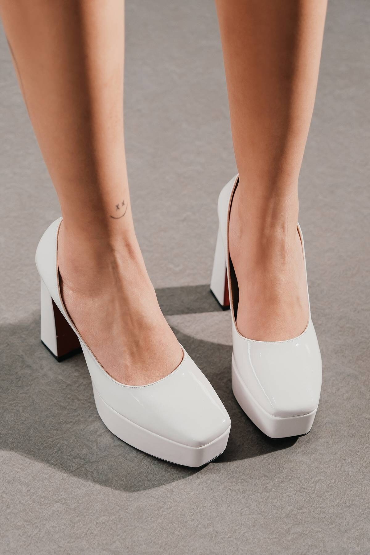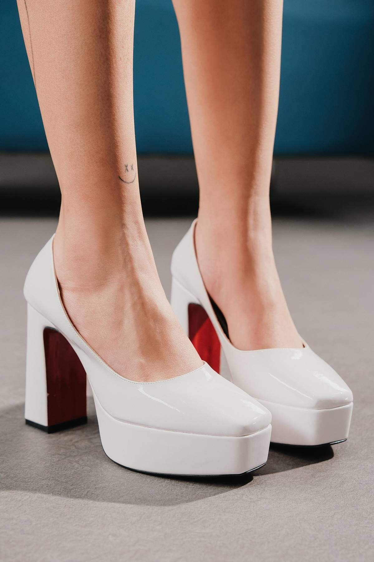 Kadın Kalın Topuklu Ayakkabı Ecovan Beyaz Rugan